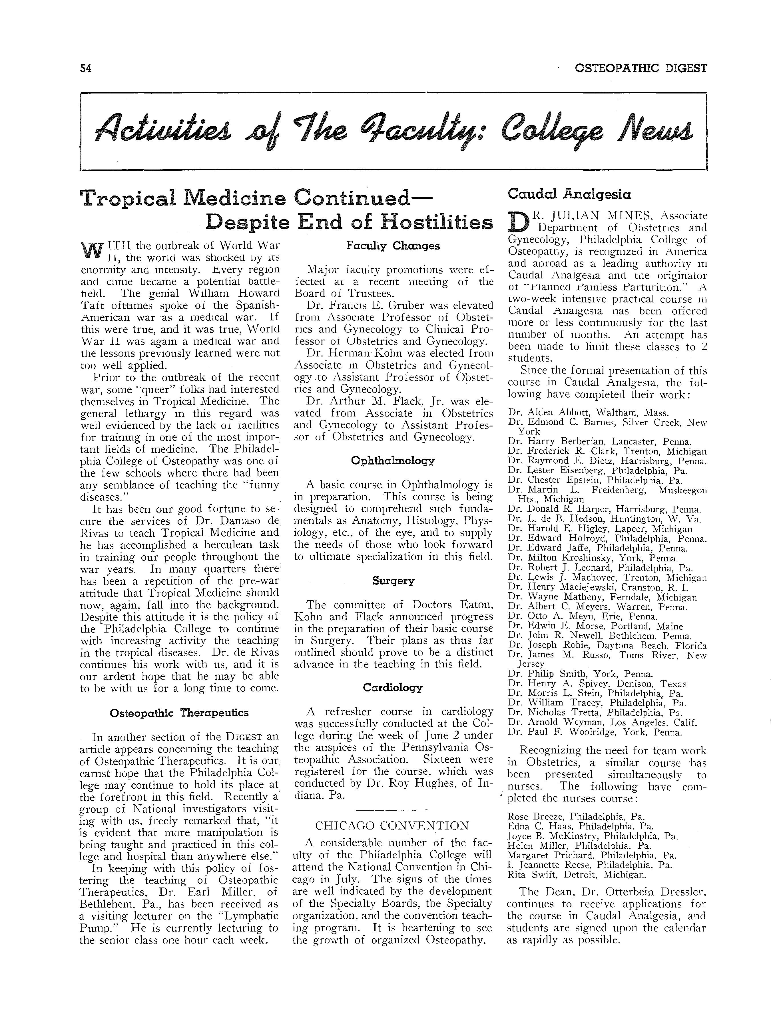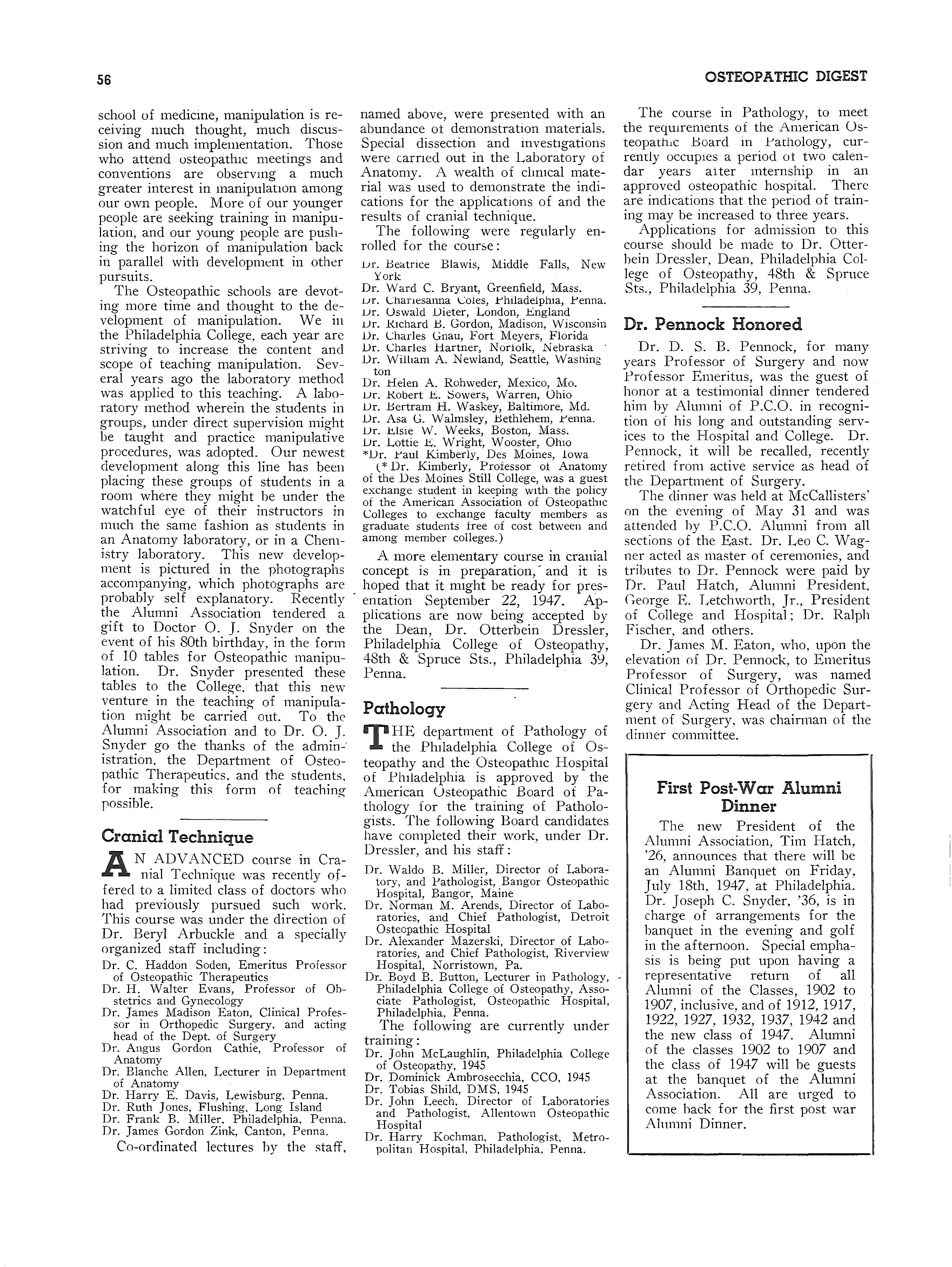Published at Intervals During the Year by the PHILADELPHIA COLLEGE OF OSTEOPATHY OSTEOPATHIC HOSPITAL OF PHILADELPHIA 48th and Spruce Streets