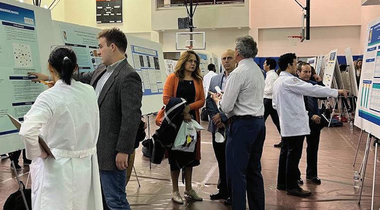 Bryan Ginn, chief campus officer, PCOM Georgia, and Andrea Mann, DO, dean of the osteopathic medicine program, PCOM Georgia, congratulated the students at lunch for their winning entries. Wearing PCOM Georgia team jerseys, judges assessed the projects lining the exhibit halls.