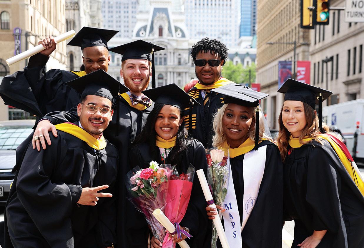 PCOM graduates gathered on Broad Street, Philadelphia, following Commencement on May 19.