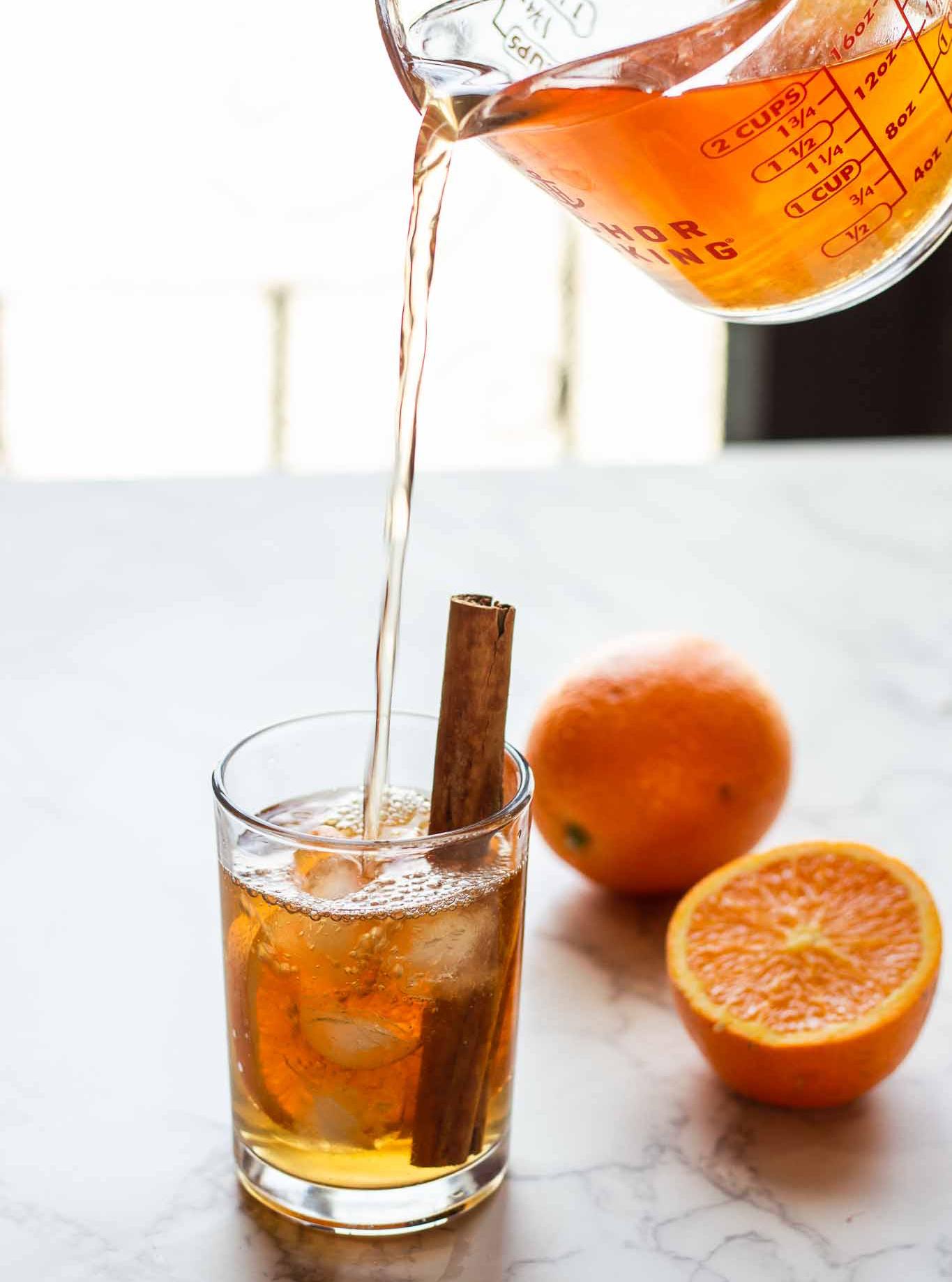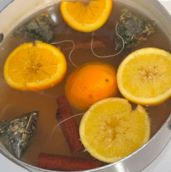 Slice ½ orange and add the slices to the hot tea during the last minutes of simmering.