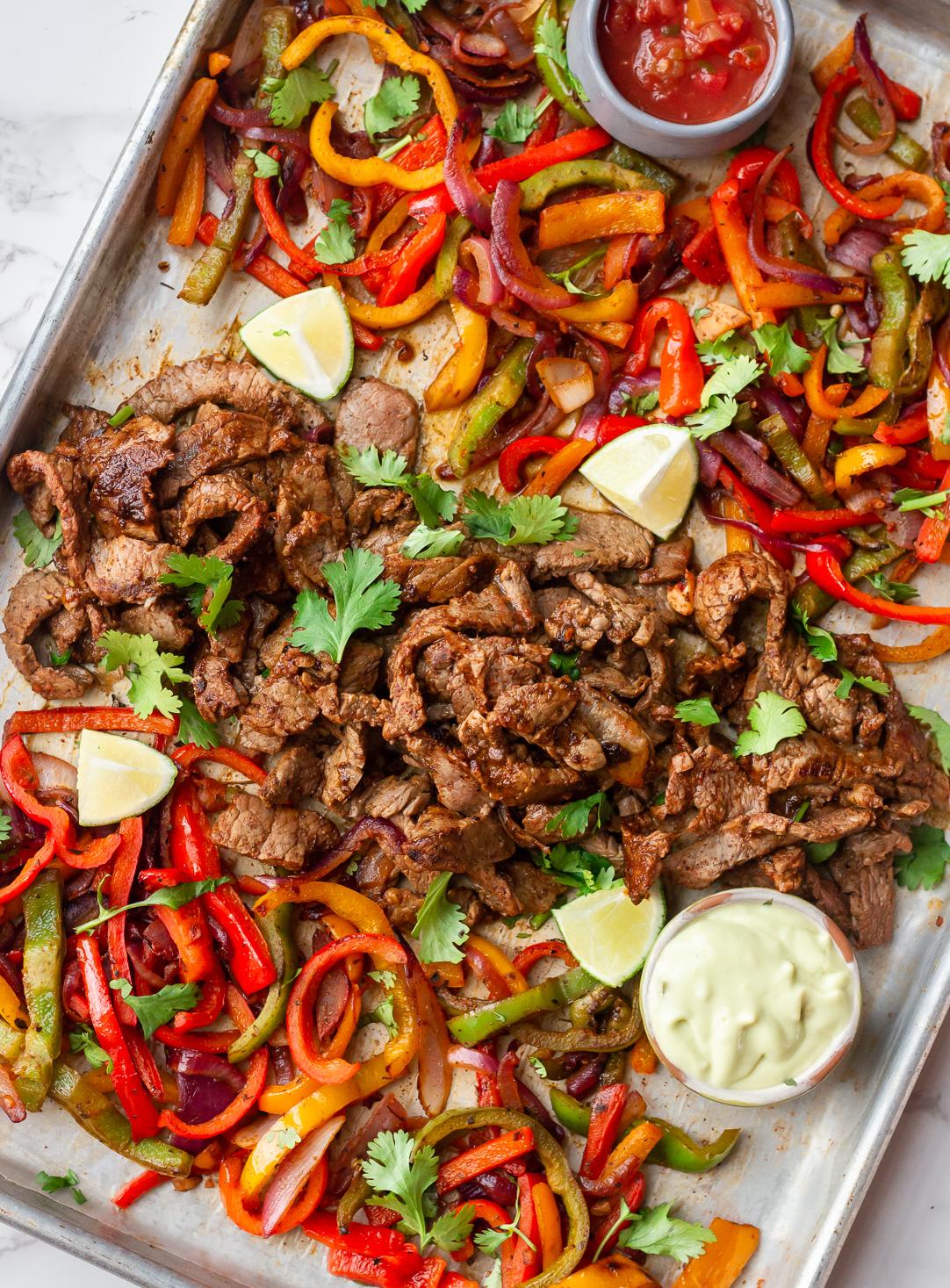 Place peppers and onions in a large bowl. Pour half the avocado oil mixture over veggies. Toss to combine.