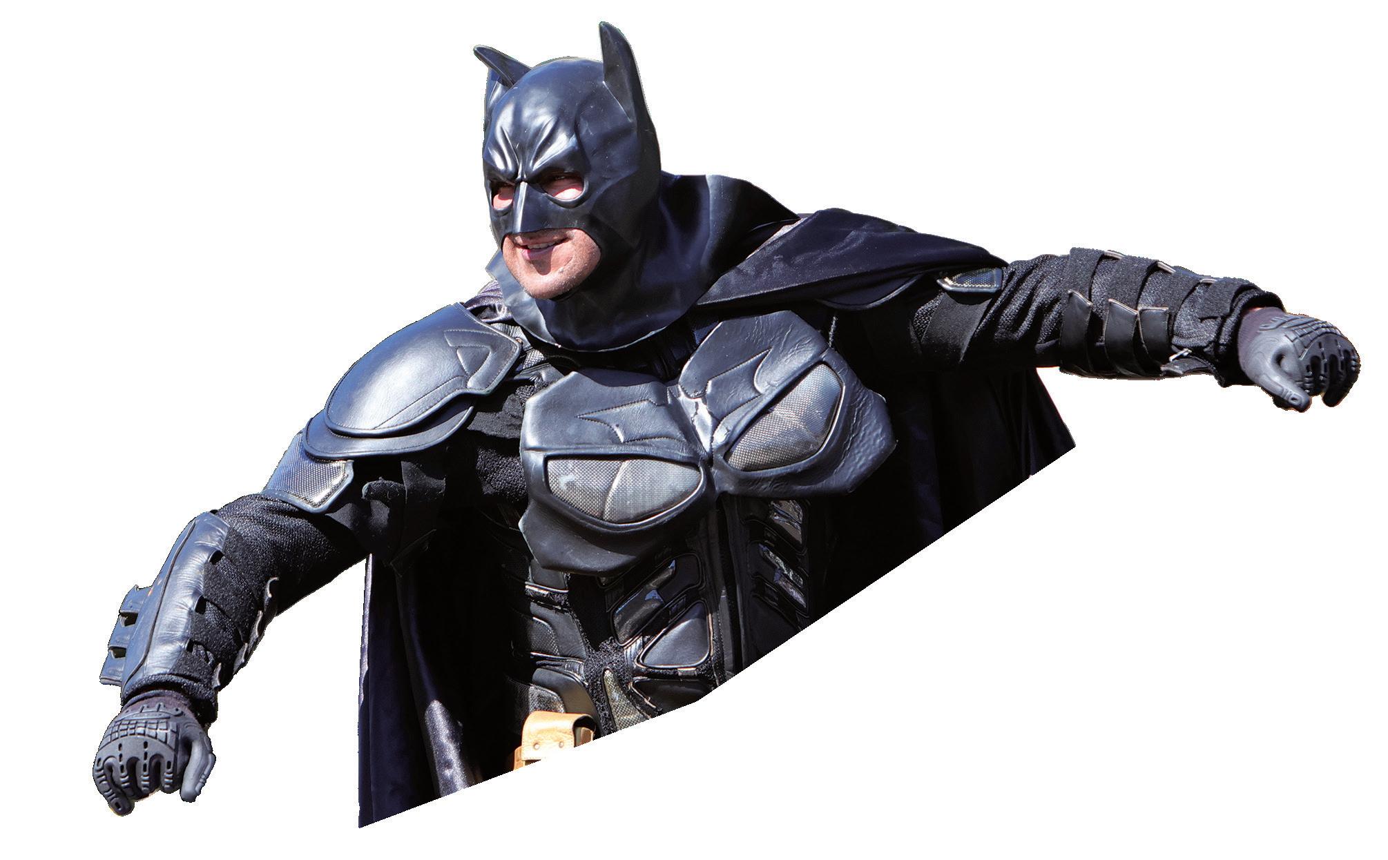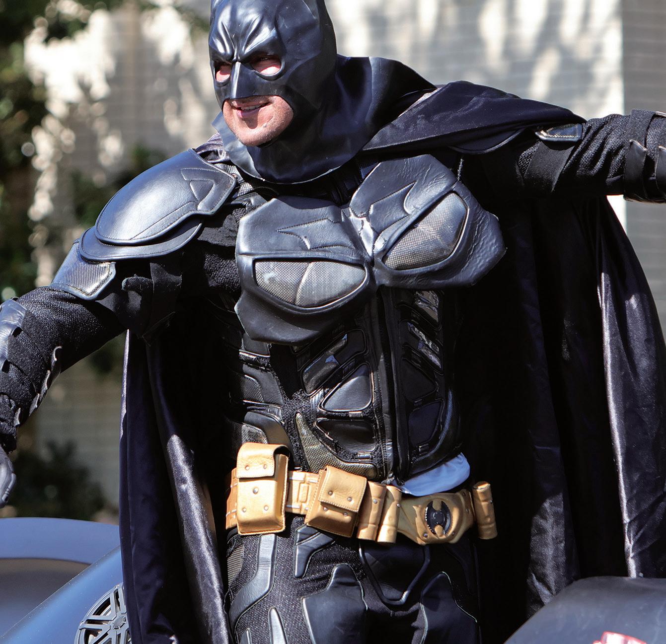 He wears the same uniform that he adopted around 2000 — blue pants, a long-sleeved shirt adorned with the stars and stripes, and kneehigh socks. In a concession to safety, he has replaced his straw hat with a helmet. Children sprayed him with silly string that got caught in his axle one year, causing him to go off the front of the bike.
