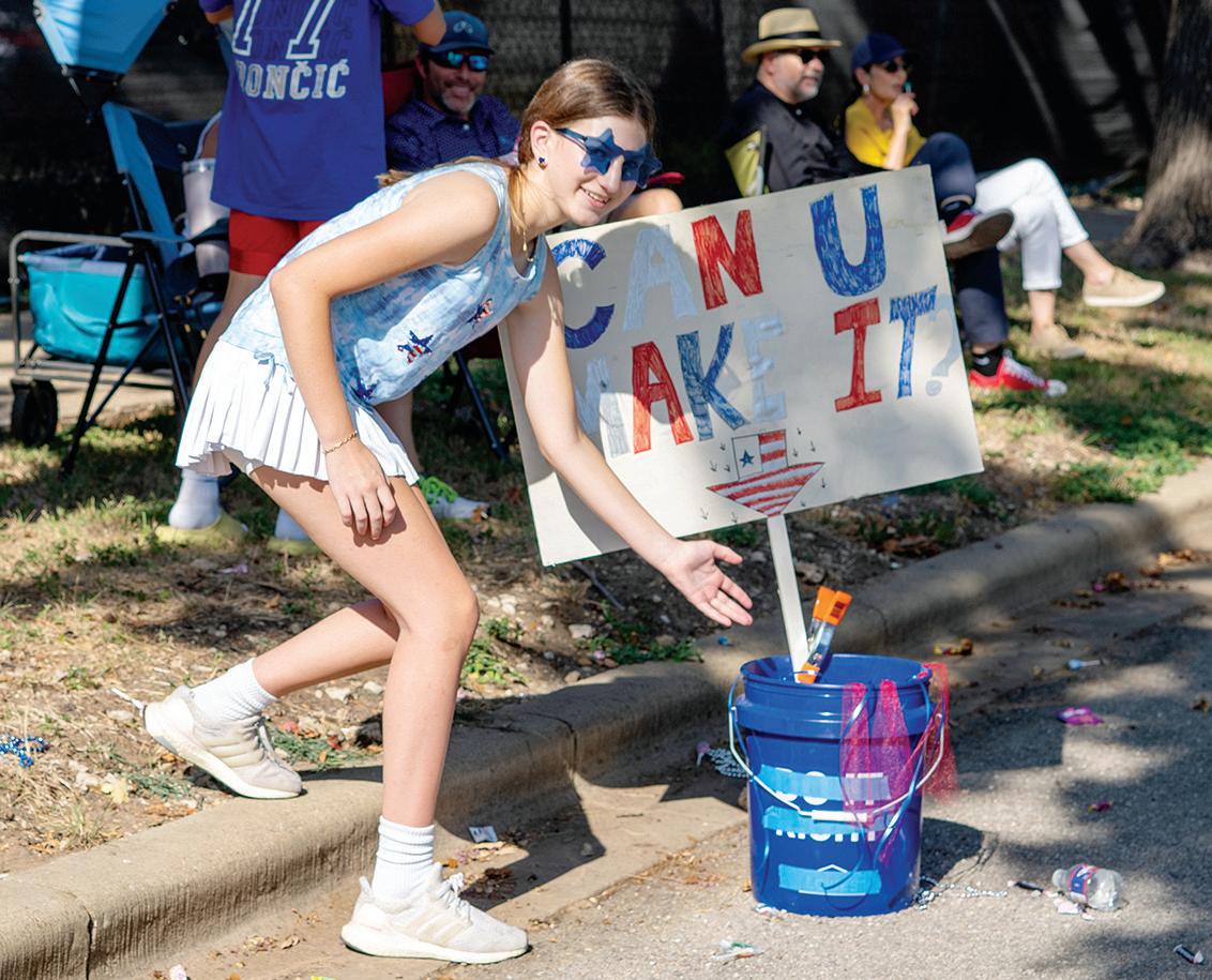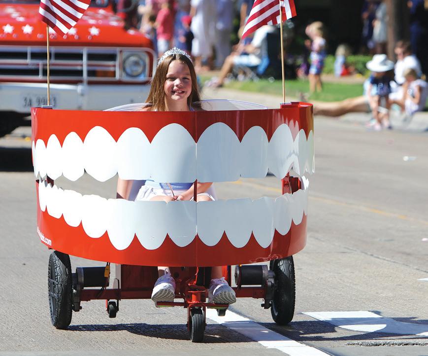 The former Marine with a love of patriotism, freedom, and America has participated in 49 Park Cities Fourth of July parades. For all but three of those years, he has ridden the antique penny farthing he bought in 1975, which is about 5 feet tall with a 48-inch front wheel and no brakes.