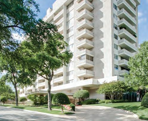 combined living and dining room with gas fireplace and Juliet balconies overlook the pool and water garden. Kitchen features built-in SubZero refrigerator/freezer, double convention Thermador ovens, six-burner Wolf gas cooktop and Asko dishwasher. Additional space off the kitchen provides space for a home office. Primary suite and bath has dual vanities, custom built-ins, walk-in closet, separate shower and spa tub. Guest bedroom has an en-suite bath with built-in cabinetry and a balcony. The boutique Park Highlander luxury condominiums are located across the street from The Shops of Highland Park and within walking distance to numerous restaurants and The Katy Trail. Building amenities include on-site manager, 24-hr Concierge, updated lobby and fitness center as well as a pool and gardens. Residence 4D has two assigned in-garage parking spaces.