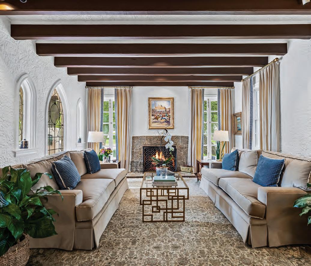 Within the six-bedroom residence, you’ll find decorative moldings, high ceilings and an elegant mix of materials including a substantial floor-to-ceiling stone fireplace in the family room.