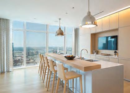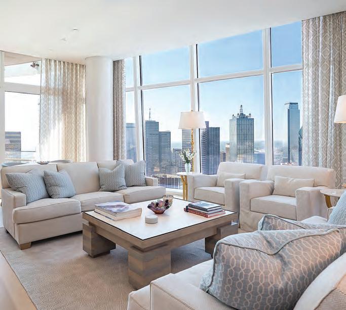 The height of luxury at Museum Tower, this halffloor residence was designed by Alex Eskenasy and Josie McCarthy and built to perfection by Jonathan Sebastian. White high gloss acrylic walls and 5’’ oak floors add warmth while leading you through a space illuminated by Craig Roberts custom lighting. The Chef’s kitchen features oak Bulthaup cabinetry, complemented by Wolf appliances- 2 convection ovens,1 steam oven, and a 48’’ gas range. A SubZero refrigerator and a full-height wine closet complete this culinary haven. The primary bedroom boasts breathtaking views of Downtown Dallas, and is equipped with remote-controlled blackout shades for privacy. The primary bath is a sanctuary of indulgence, with a soaking tub, walk-in shower with custom mosaic tile flooring, Lefroy Brooks hardware, double sinks and a separate built-in vanity. This residence has three prime parking spaces, just across from the elevator lobby, plus a spacious storage unit. Schedule your tour and experience luxury redefined.