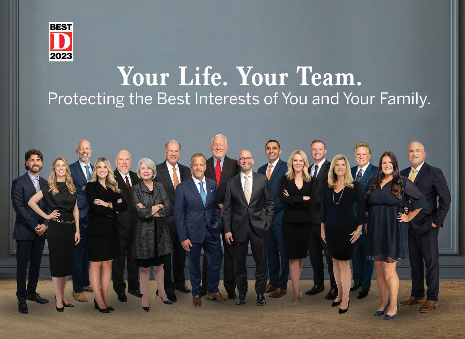 prestonhollowpeople.com | April 2024 29 Dallas 4311 Oak Lawn Ave., Suite 450 | Dallas, TX 75219 | 214.526.5234 | vernerbrumley.com Meridian 113 N. Main St. | Meridian, TX 76665 | 254.229.5317 | vernerbrumley.com 205 W. Louisiana St., Suite 100 | McKinney, TX 75069 | 972.562.2212 | vernerbrumley.com McKinney Heath 6780 Horizon Rd., Suite 100 | Heath, TX 75032 | 214.771.8672 | vernerbrumley.com Verner Brumley mueller Parker Family l aw * Board Certified in Family Law by the Texas Board of Legal Specialization + Member, American Academy of Matrimonial Lawyers † International Academy of Family Lawyers ^ The American College of Family Trial Lawyers