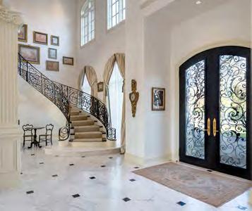 Inside, the six-bedroom property’s wow factor multiplies – the foyer features dramatic, blackand-white marble, a sweeping double staircase and a glamorous chandelier, all elements for a grand entrance.