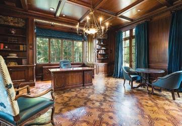 There, a fantastic French home nestled behind gates o ers a private, sprawling setting to call home. The serene, two-acre estate boasts more than 11,000 square feet of living space at 4255 Cochran Chapel Road.