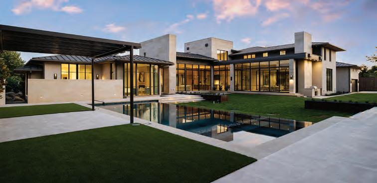 Situated in a new gated community in Preston Hollow, this stunning, fully-customized 4414 sf, modern residence offers a rare opportunity for the new owner to choose final cosmetic finishes for this recently completed move-in ready home! The spacious living-dining room features 11 ft ceilings, and floor to ceiling windows. The adjoining dining area boasts a custom wine room, equipped with state-of-the art temperature and lighting controls. The kitchen is equipped with a 48” Wolfe gas cook top – with double wall-ovens in the adjacent prep kitchen. Large covered patio with a wood-burning gas fireplace and electric drop-screens is off the kitchen-dining area, providing the perfect location for outdoor dining or morning coffee. The firstfloor primary suite features a large walk-in closet, custom vanity, abundant storage and custom tiled shower. Three bedrooms with en-suite bathrooms provide space for family or guest stays. Don’t miss this stunning new home!