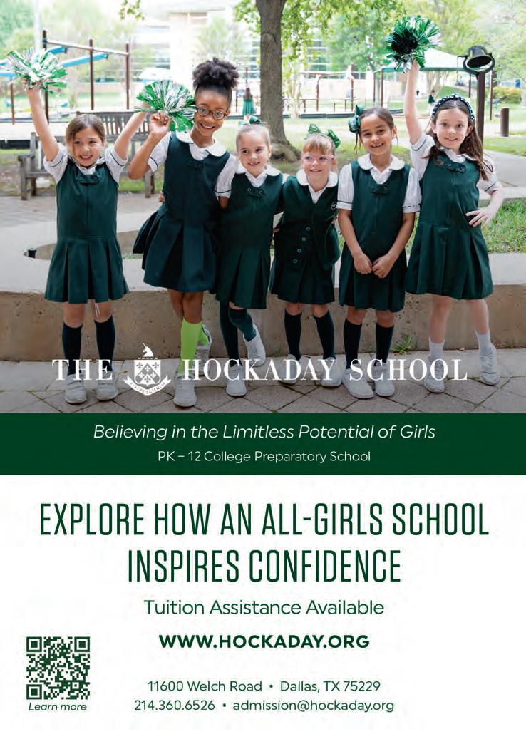 2 September 2023 | prestonhollowpeople.com NEWS DIGEST Preston Hollow People: ISSN 2993-6292 (Print) 2993-6306 (Online) is published monthly by CITY NEWSPAPERS LP, an affiliate of D Magazine Partners LP, 750 N. Saint Paul St., Suite 2100, Dallas, TX 75201. Copyright 2023. All rights reserved. No reproduction without permission. Submissions to the editor may be sent via e-mail to editor@peoplenewspapers.com. Correspondence must include writer’s name and contact number. Main phone number, 214-739-2244 Preston Hollow People is printed on recycled paper. Help us show love for the earth by recycling this newspaper and any magazines from the D family to which you subscribe. Publisher Patricia Martin EDITORIAL Editor William Taylor Art & Production Director Melanie Thornton Deputy Editors Rachel Snyder | Maria Lawson Sports Editor Todd Jorgenson Digital & Production Assistant Mia Carrera ADVERTISING Senior Account Executives Kim Hurmis | Tana Hunter Account Executives Quita Johnson | Evelyn Wolff Client Relations & Marketing Coordinator Maddie Spera OPERATIONS Distribution Manager Mike Reinboldt Interns Harper Harris | Aadya Kuruvalli Alexzandra Navarrete | Lauren Ruminer Hope Smith PrestonHollowPeople SOLD 3251 SQ FT/TAX 3 BED 3.1 BATH 4528 ROLAND AVENUE UNIT#B, Highland Park , Texas 75219 OFFERED FOR: $1,495,000 214-680-5556 pamelakrueger@daveperrymiller.com Pamela Krueger SOLD 4318 UNIVERSITY BOULEVARD 3494 SQ FT/TAX Contact us to discuss the best timing to list your home for the Fall market 4 BED 3.1 BATH University Park , Texas 75205 OFFERED FOR: $1,439,000 214-478-9544 elliott@daveperrymiller.com Paige and Curt Elliott Under Contract the first week on the market. HYMN FESTIVAL WITH BOB CHILCOTT HPUMC CHANCEL CHOIR & CHURCH MUSIC INSTITUTE SUNDAY, OCTOBER 8, 2023 | 5:30 PM | SANCTUARY THE GESUALDO SIX SUNDAY, NOVEMBER 19, 2023 | 5:30 PM | SANCTUARY CHRISTMAS AT HIGHLAND PARK HODIE - RALPH VAUGHAN WILLIAMS SUNDAY, DECEMBER 10, 2023 | 5:30 PM | SANCTUARY KELLI O’HARA SUNDAY, JANUARY 14, 2024 | 5:30