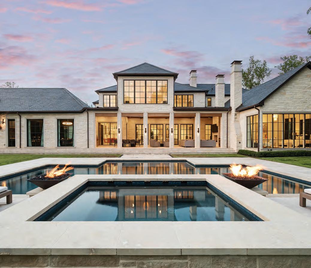 Looking for an ultra-luxurious estate that’s brand-new? You’re in luck with 6901 Hunters Glen Road. Completed just this year, the 10,500-squarefoot stunner was designed by SHM Architects with interiors by Erin Sander. No expense was spared in giving this new marvel all the best features, from automated shades that effortlessly cover the oversized windows to the finest materials, finishes, and lighting. Exploring this masterpiece, vast open spaces that exude minimalist, Calicool style beckon for sophisticated soirées or tranquil days at home with lush scenery always in view. Foodies especially will swoon over the magazine-worthy kitchen, marble-clad wet bar, and gorgeous butler’s pantry for lively entertaining, while wellness enthusiasts are sure to love the pristine primary suite and the backyard’s infinityedge pool and spa.