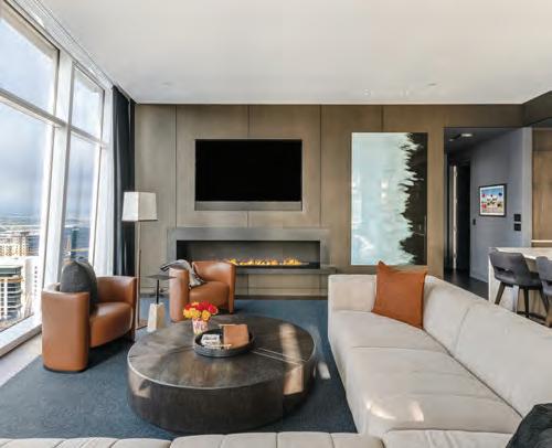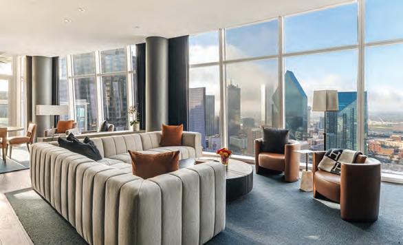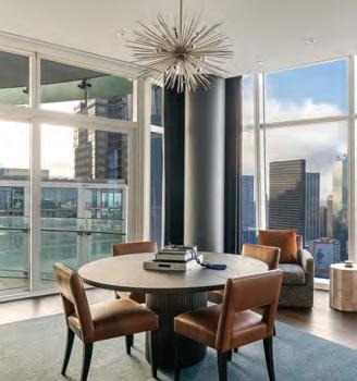 Perched high above the vibrant Dallas Arts District, the Gallery Penthouse at HALL Arts Residences is more than a home: It is the backdrop for a life welllived. With its harmonious balance between strong architecture and quiet, inviting spaces, the full-floor penthouse on level 26 has been meticulously designed by nationally renowned Abeyta Tibbs Architecture. Within its 7,688 square feet, the residence offers four bedrooms, four full baths, two half baths, thoughtful luxuries and effortless elegance.