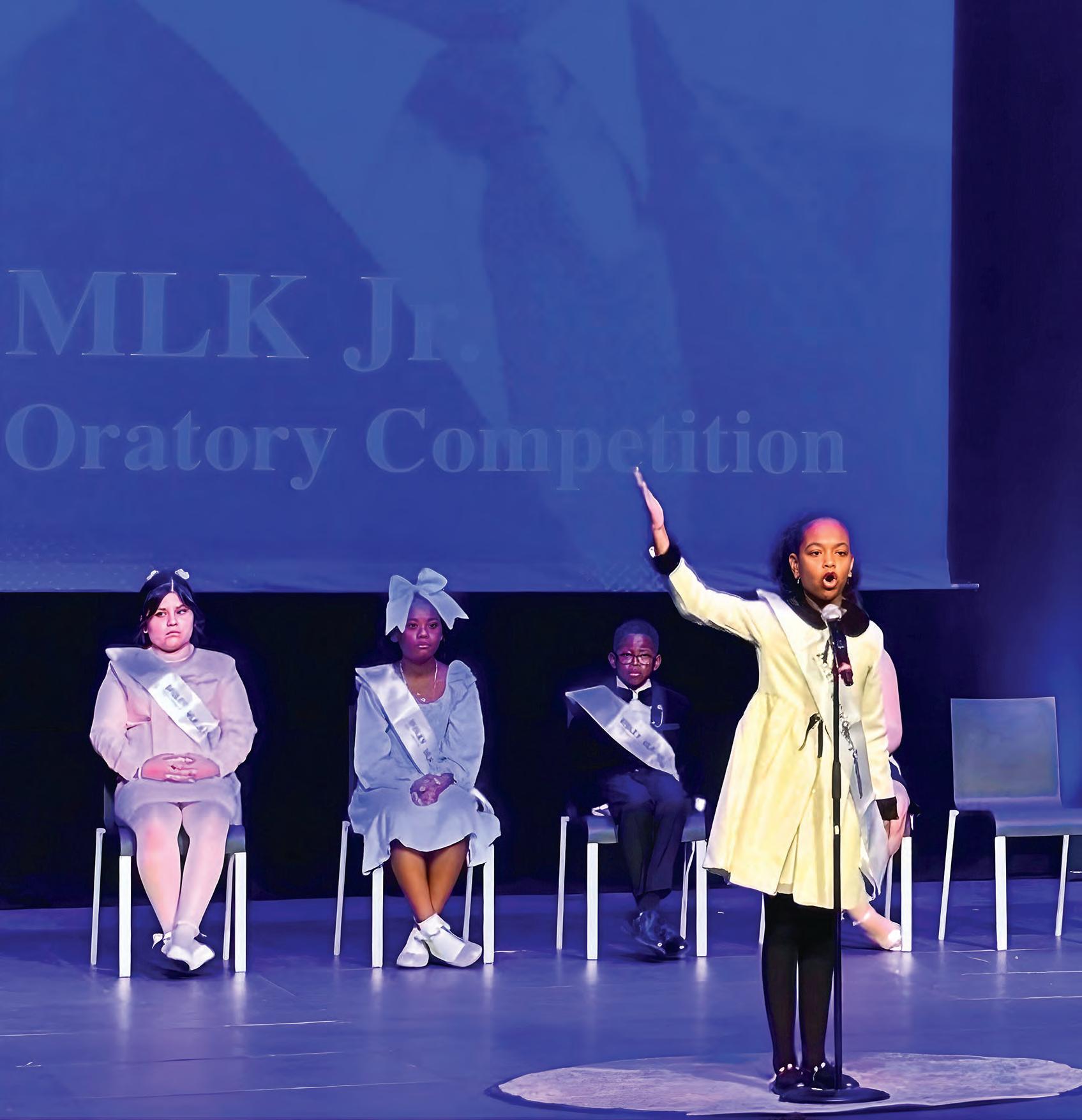 Fourth-grader Cameron Kinder, a notyet-decade-old orator and the competition’s second-place winner, stood before the audience with a wisdom beyond his years. Reflecting Dr. King’s call for moral courage