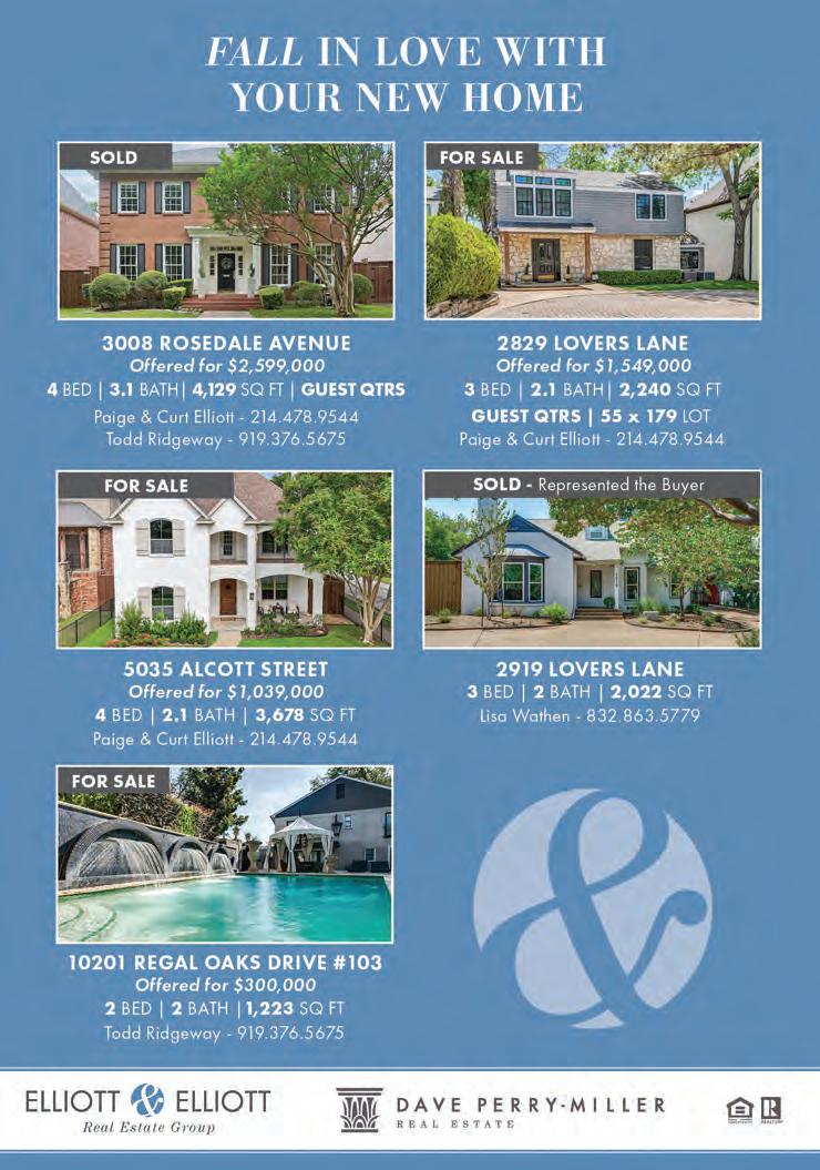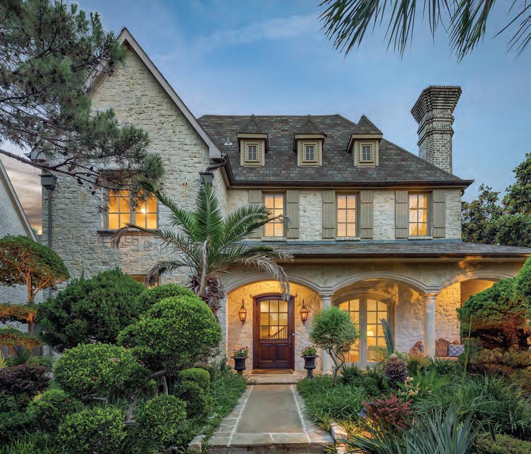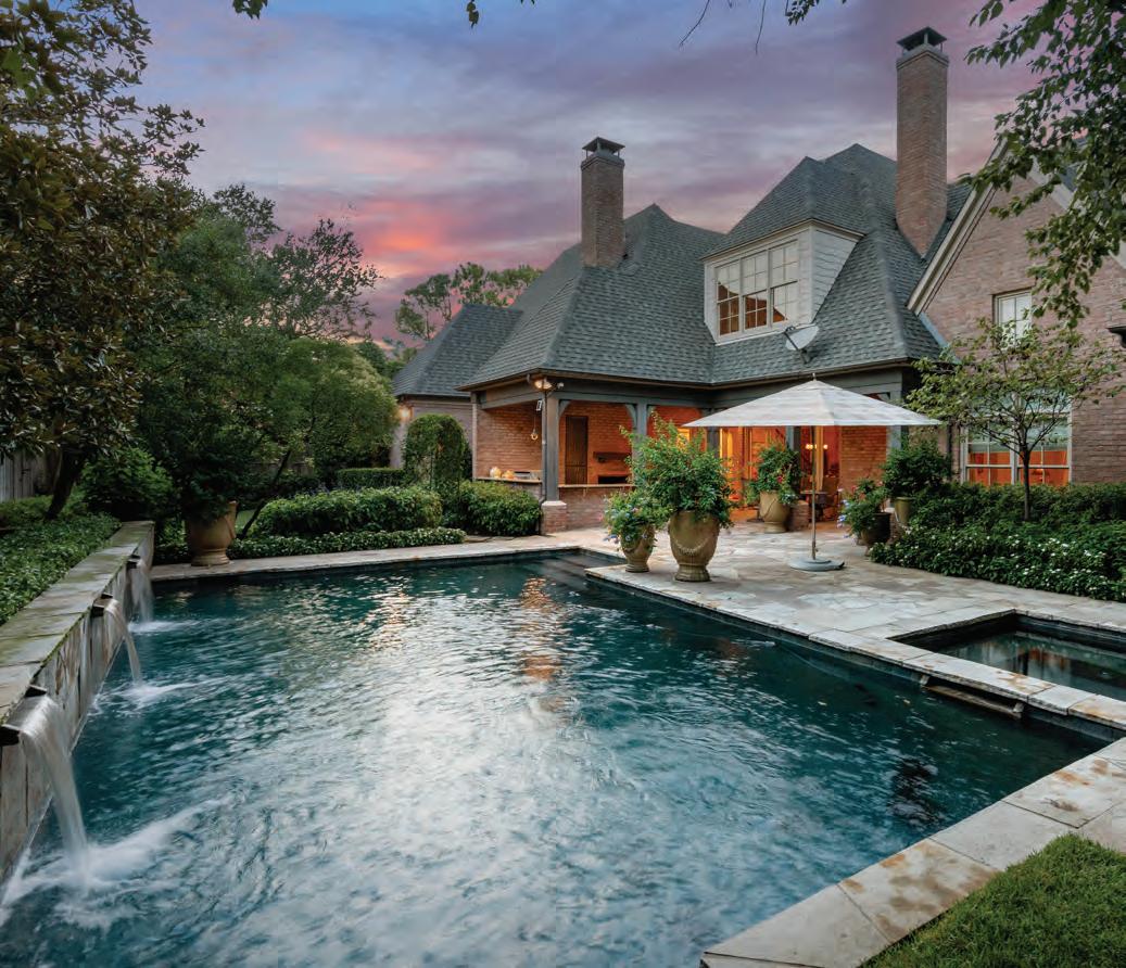 At 3828 Mockingbird Lane, one of the Park Cities’ premier streets, is a fivebedroom home that is ideal for family living and sophisticated entertaining. The kitchen, ready to prepare memorable dinner parties, has a professional Wolf range, a 48-inch Sub-Zero refrigerator and two refrigerated drawers, plus a wine cooler that holds 150 bottles. Outside is a pool and sauna, and the home has a whole-home generator.