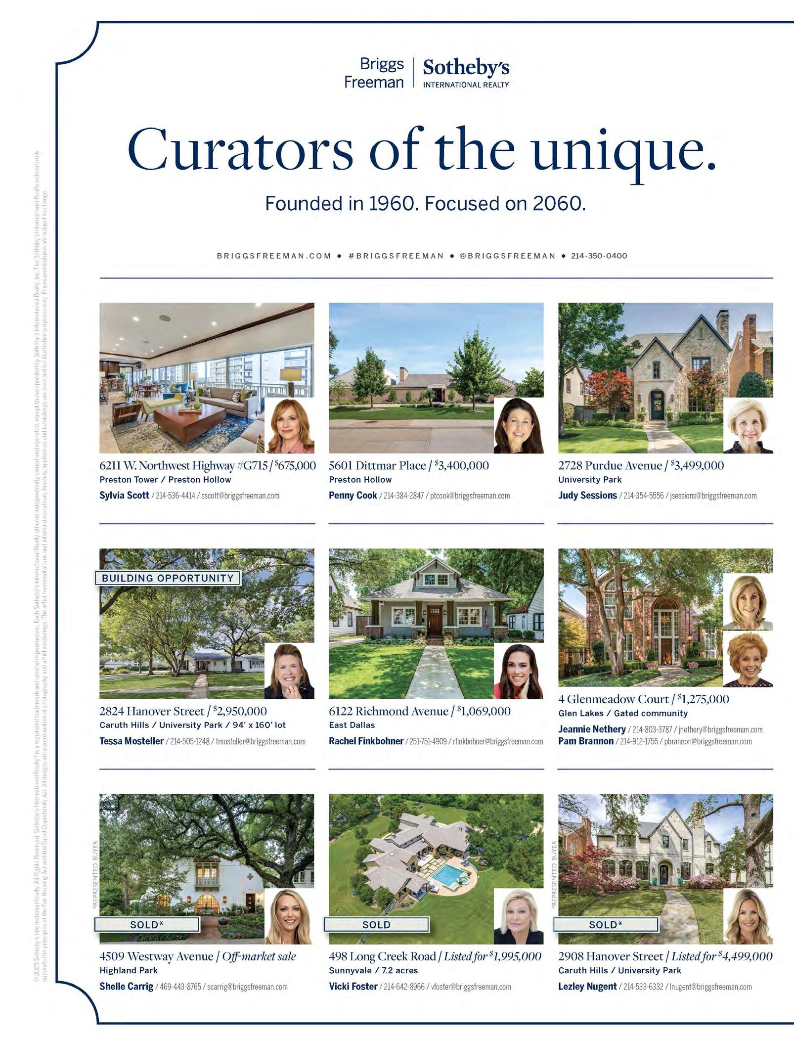 Year after year, the brokerage leads in buying and selling the elegant estates, family homes, townhomes and condominiums of the Park Cities.