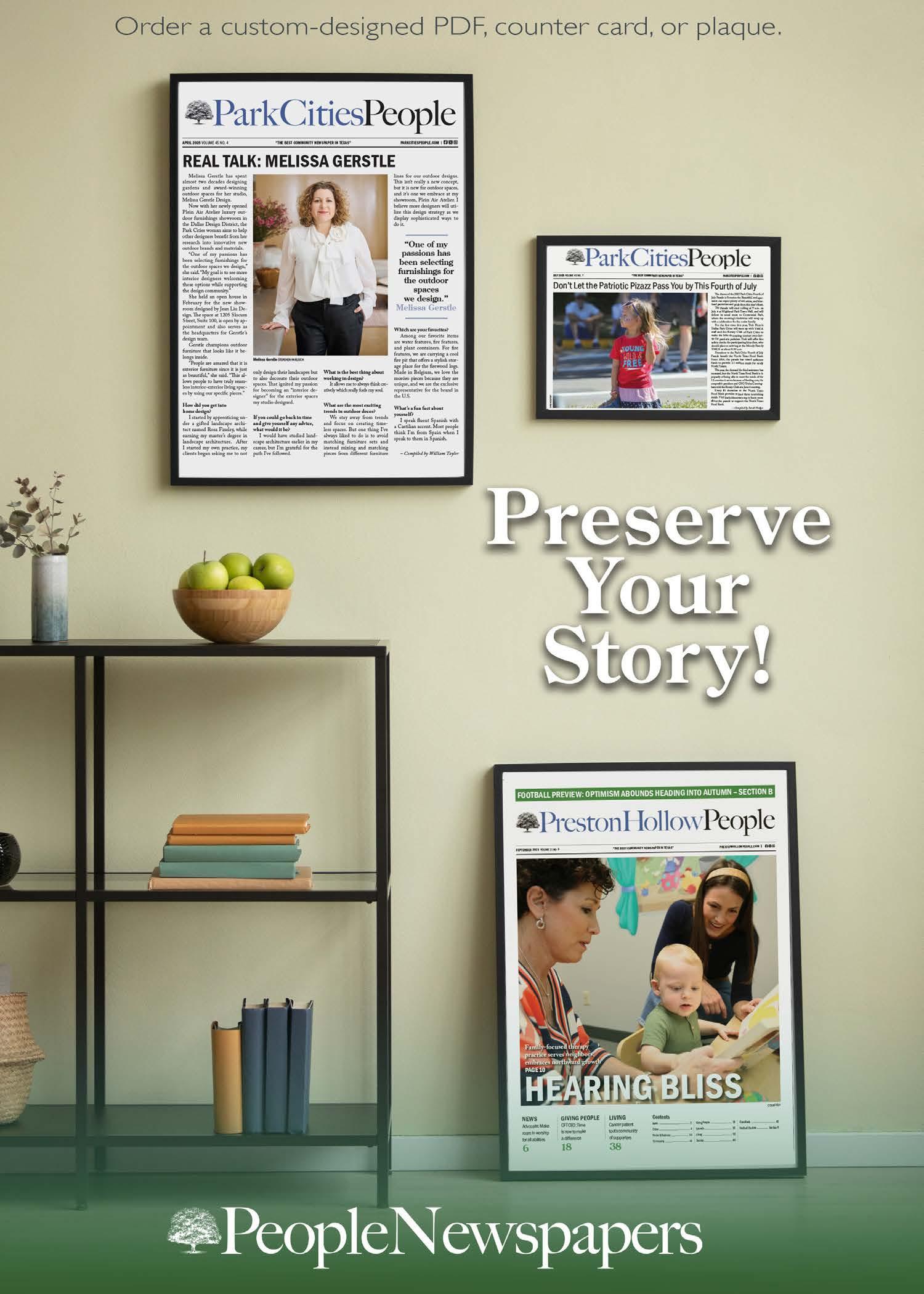 For more, check out our website, weekly Eat - Play - Give e-newsletters, and the monthly print editions of Park Cities People and Preston Hollow People