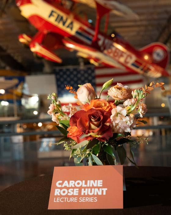 Cause: Named in honor of Caroline Rose Hunt, philanthropist, business leader, and founder of the boutique charter airline Pumpkin Air, the lecture series celebrates trailblazers whose work has shaped aviation and inspired future generations.