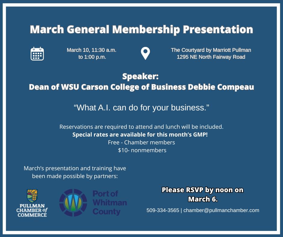 • Pullman Chamber, General Membership Luncheon, 11:30 a.m., see pg 1