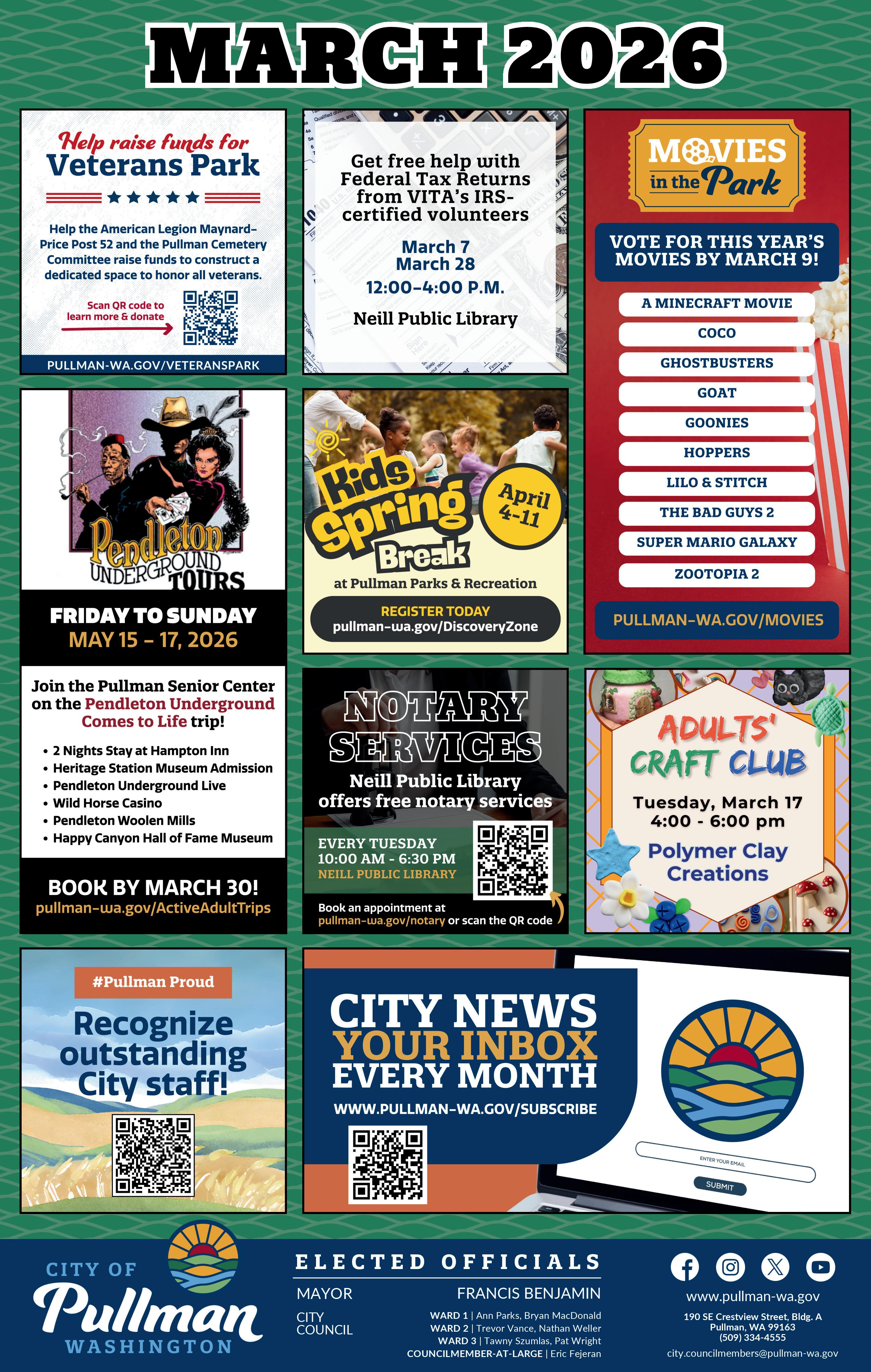 • City of Pullman, Free Tax Return Help | 12:00 p.m. –4 p.m. | Neill Public Library