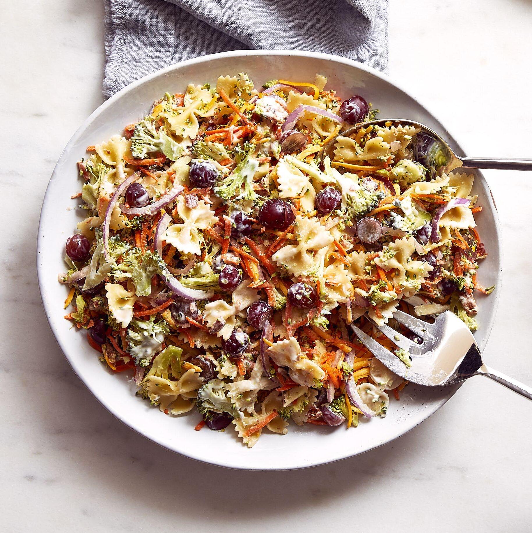 5. Combine the vegetables, grapes, cheese, bacon, and cooked pasta in a large bowl.
