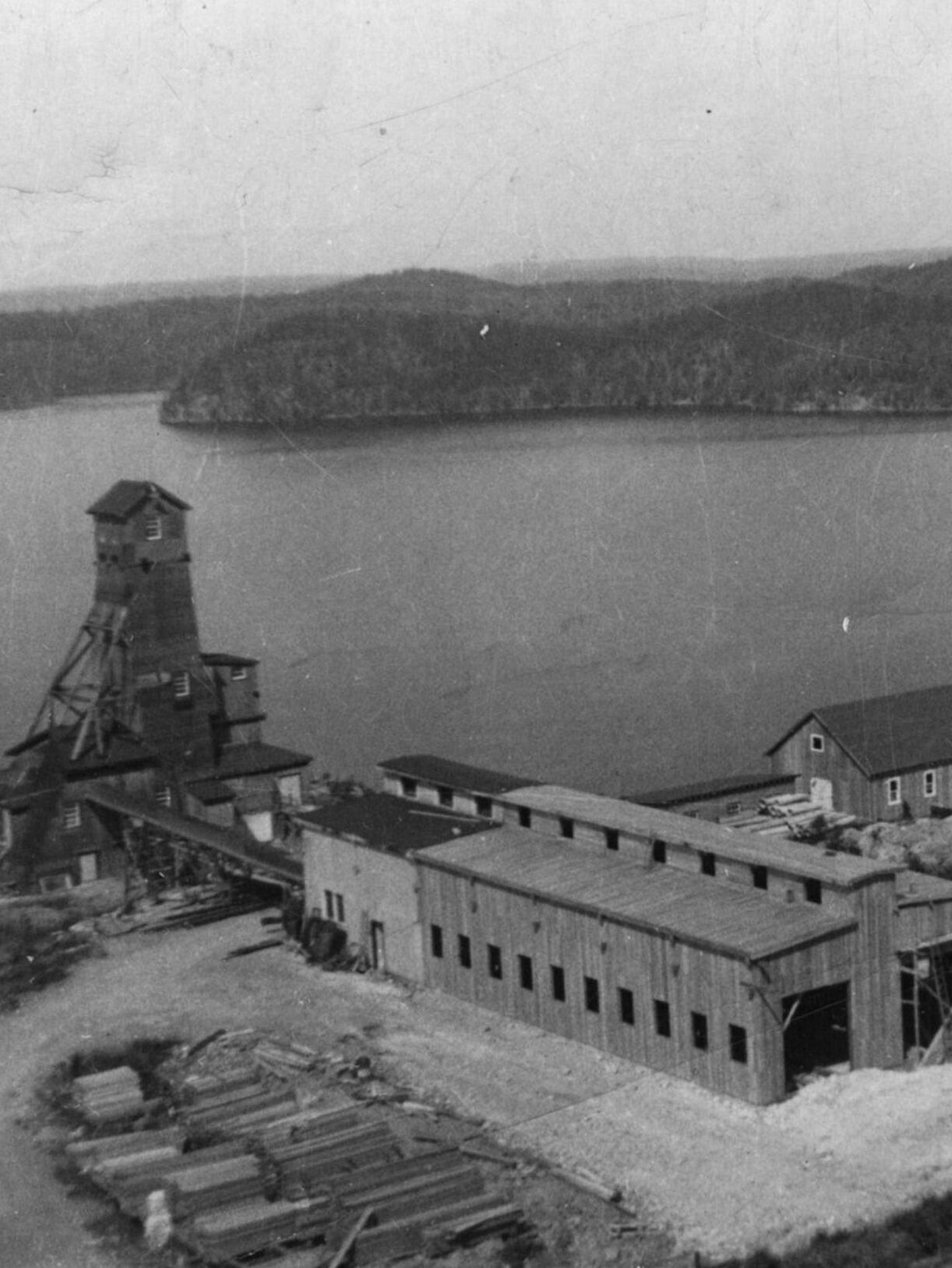 Gaining access to the iron ore was not a straight-forward operation. Located at the very bottom of Steep Rock Lake, engineers had to figure out how to drain the lake's waters, divert the surrounding rivers, and dredge millions of years of glacial sediment that covered the lake bottom – all before being able to expose the ore body and begin mining.