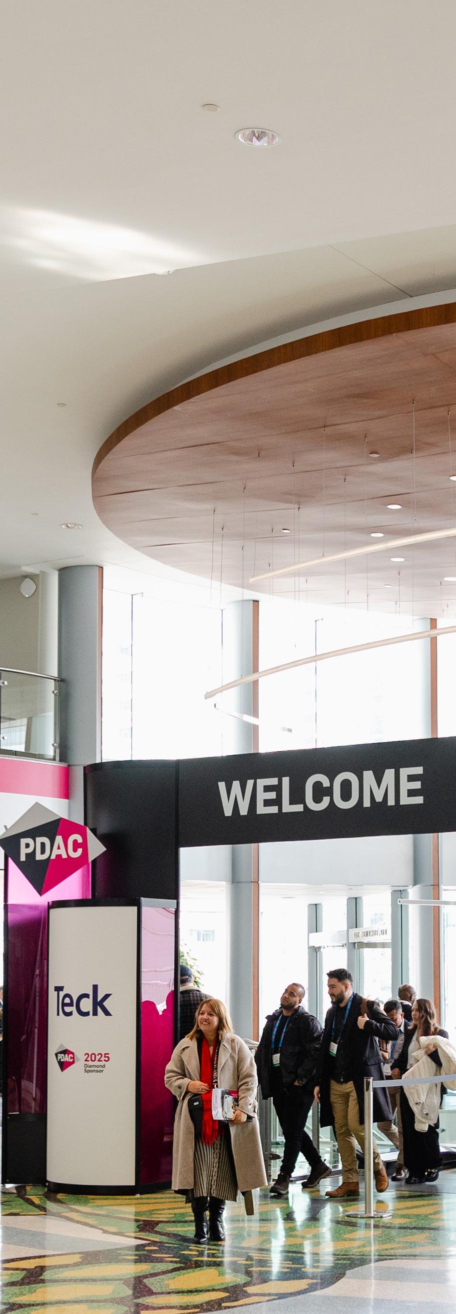 PDAC 2025 delivered industryleading presentations, programs, exhibits and special events for 27,353 attendees. The award-winning event was spread across both the North and South Buildings of the MTCC, as well as the nearby Fairmont Royal York Hotel. Attendees included investors, miners, geoscientists, community leaders, students, government officials and more.