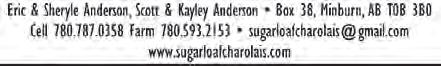 Charolais Banner (ISSN 0824-1767) is published 5 times per year (February, May, August, October and December) by Charolais Banner Inc., Regina, SK.