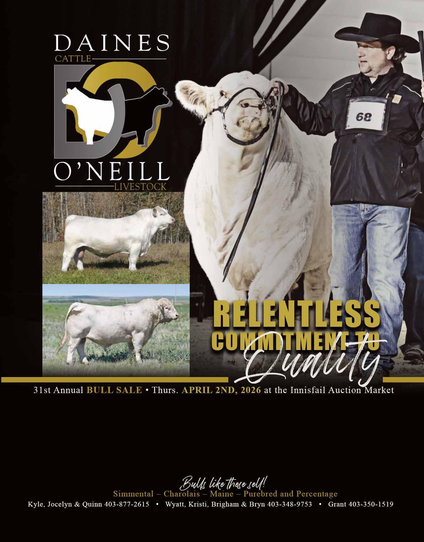 Daines Cattle & O’Neill Livestock 31st Annual Bull & Female Sale, 1 pm, Innisfail (AB), Auction Mart