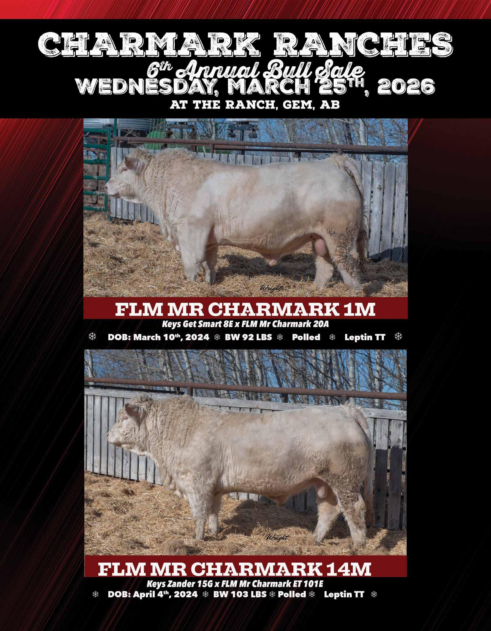Charmark Ranches Bull Sale, 1 pm, at the ranch, Gem, AB