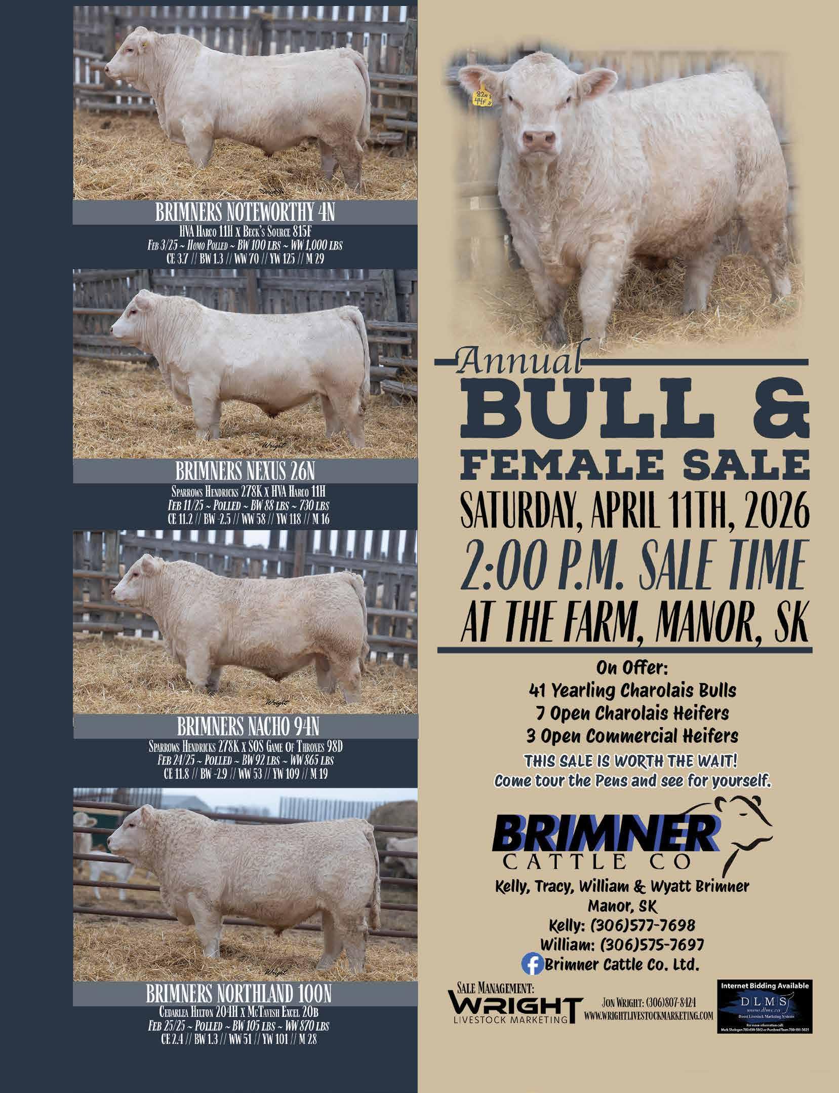 Brimner Cattle Co. Bull Sale, 1:30pm, at the farm, Manor, SK