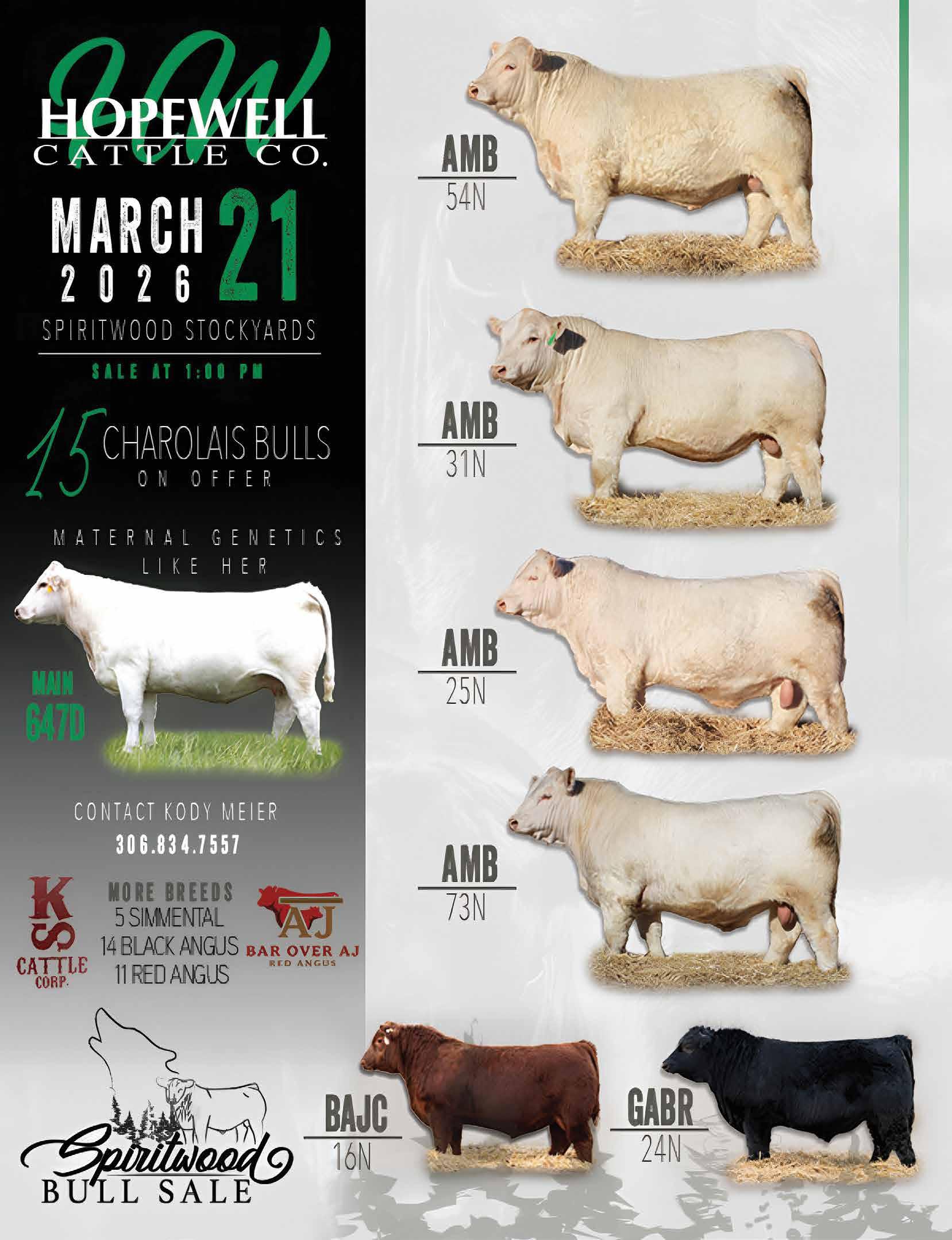 Spirit of the North Bull Sale, 1 pm, Spiritwood (SK) Auction Mart