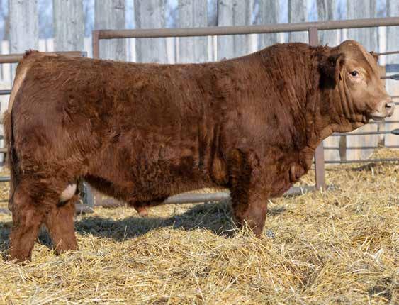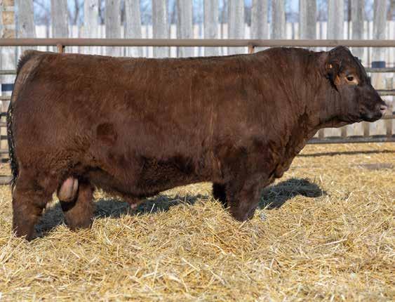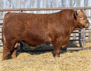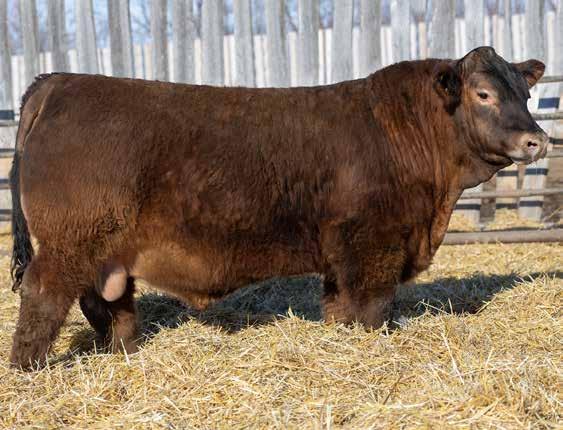 “We don’t write a bunch of footnotes in our catalog but we feel that 153L is a special bull. He is without a doubt one of the best bulls we have ever raised. This red factor bull is an exceptional individual that has a perfect set of feet, tremendous length and a perfect skull design and muzzle. When you analyze this bull he checks all the boxes to be a major breeding piece in your program.”