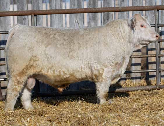What a model Charolais cow!! Super feminine, wide muzzled, large chested, deep bodied, beautiful uddered with great pigment. A cow that took close to 40 years of our families breeding to produce.