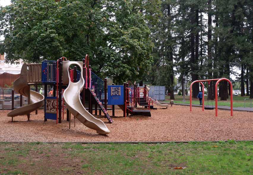 The heart of the neighborhood is Mt. Scott Park (pictured opposite page), a sprawling green space with towering Douglas firs, tennis courts, playgrounds with structures and swings for both toddlers and older kids, and the highly anticipated seismic retrofit and expansion of the Mt. Scott Community Center, coming in 2025. The indoor pool here is incredible for kids, with a whirlpool, lazy river, waterslide and splash zone. The center also has a roller rink with learning “skate-mates” and kid hours. Foster Road’s Hammer and Jacks toy store also has an adorable indoor play space (only $5) and a Rec Room with an impressive roster of kid-friendly performers and classes all at sliding-scale costs, including Music Mondays. And Uplifted Boutique on 72nd Avenue hosts everyone’s favorite clowns, Olive & Dingo for storytime on Tuesdays at 10:30 am. Though not technically in Mt. Scott-Arleta, the Woodstock Library and the beautifully renovated Holgate Library are both walkable for many neighbors, offering storytime events and fun children’s areas.