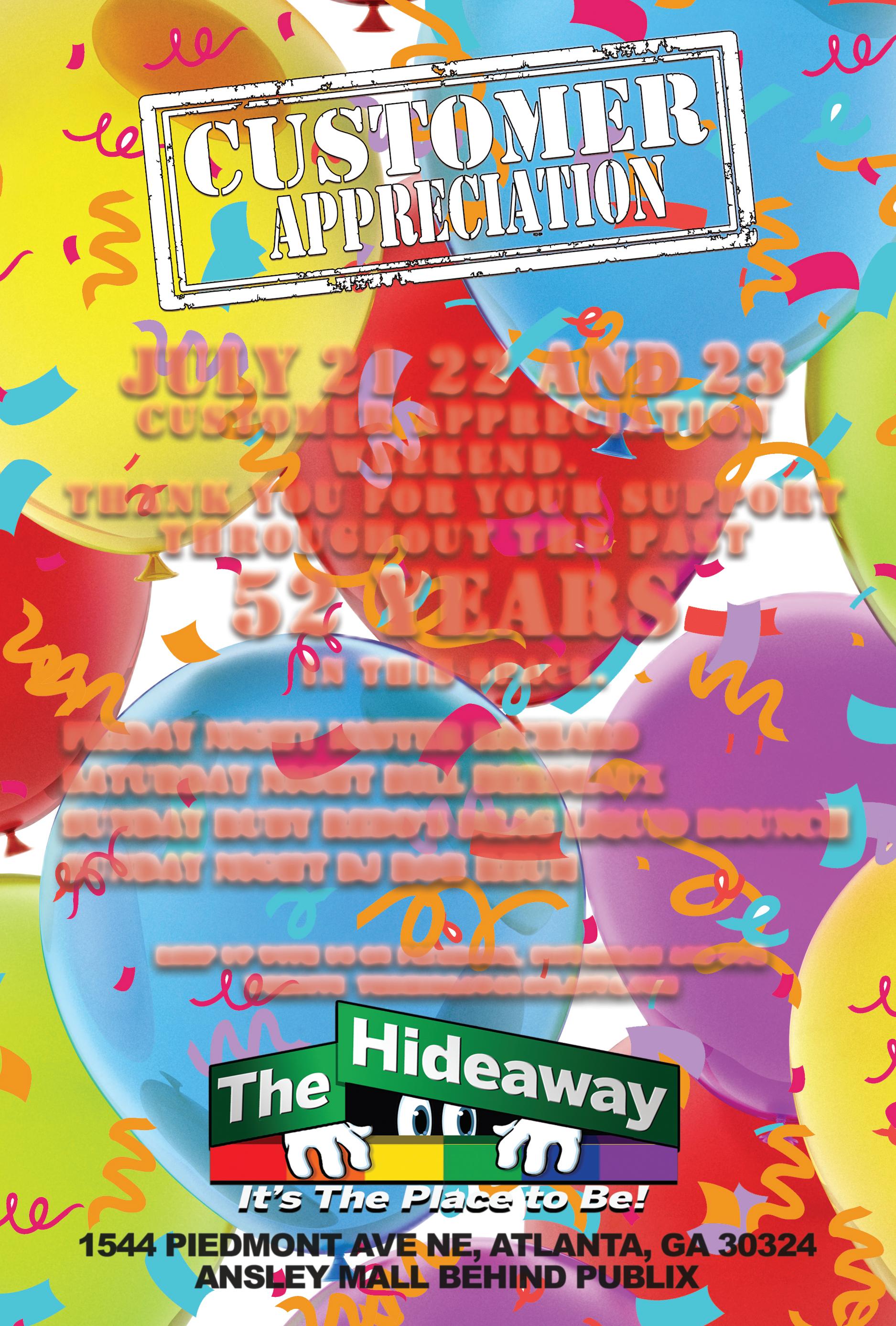 j u l y 2 1 2 2 a n d 2 3 c u s t o m e r a p p r e c i a t i o n w e e k e n d . t h a n k y o u f o r y o u r s u p p o r t t h r o u g h o u t t h e p a s t