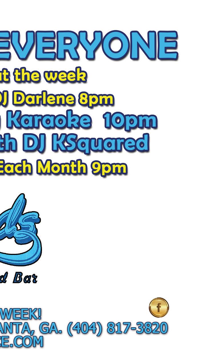 e content of DAVID Magazine is for your general information and use only. It is subject to change without notice. e opinions expressed by any writer, advertiser, or other person appearing in DAVID Magazine are not necessarily those of this publication, its management or sta . e information and materials appearing in the magazine are not guaranteed or warranted as to accuracy, timeliness, performance, completeness, or suitability of the information and materials found or o ered for a particular purpose. It shall be your responsibility to ensure that any products, services, or information available through DAVID Magazine meets your speci c requirements. DAVID Magazine is not responsible for claims made by advertisers, content of information, changes, events, and schedules. e magazine contains information and material which is owned by or licensed to DAVID Magazine, including but not limited to articles, advertisements, design, layout, graphics, and logos. No part or portion of DAVID Magazine may be reproduced in any way without the prior written consent of the publisher. Unauthorized use of DAVID Magazine may give rise to claims for damages and or criminal o enses. Your use of the information or materials in DAVID Magazine is strictly at your own risk. ONLINE davidatlanta.com PRINT At Distribution Points Across the City SOCIAL FB: davidatlantamag IG: @davidatlantamag PAGE 14 14 30