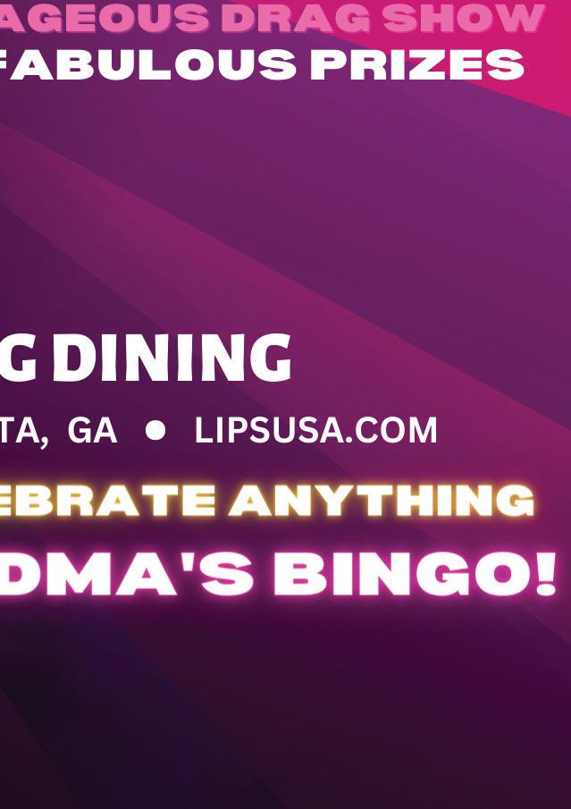 e content of DAVID Magazine is for your general information and use only. It is subject to change without notice. e opinions expressed by any writer, advertiser, or other person appearing in DAVID Magazine are not necessarily those of this publication, its management or sta . e information and materials appearing in the magazine are not guaranteed or warranted as to accuracy, timeliness, performance, completeness, or suitability of the information and materials found or o ered for a particular purpose. It shall be your responsibility to ensure that any products, services, or information available through DAVID Magazine meets your speci c requirements. DAVID Magazine is not responsible for claims made by advertisers, content of information, changes, events, and schedules. e magazine contains information and material which is owned by or licensed to DAVID Magazine, including but not limited to articles, advertisements, design, layout, graphics, and logos. No part or portion of DAVID Magazine may be reproduced in any way without the prior written consent of the publisher. Unauthorized use of DAVID Magazine may give rise to claims for damages and or criminal o enses. Your use of the information or materials in DAVID Magazine is strictly at your own risk. ONLINE davidatlanta.com PRINT At Distribution Points Across the City SOCIAL FB: davidatlantamag IG: @davidatlantamag PAGE 14 14 28