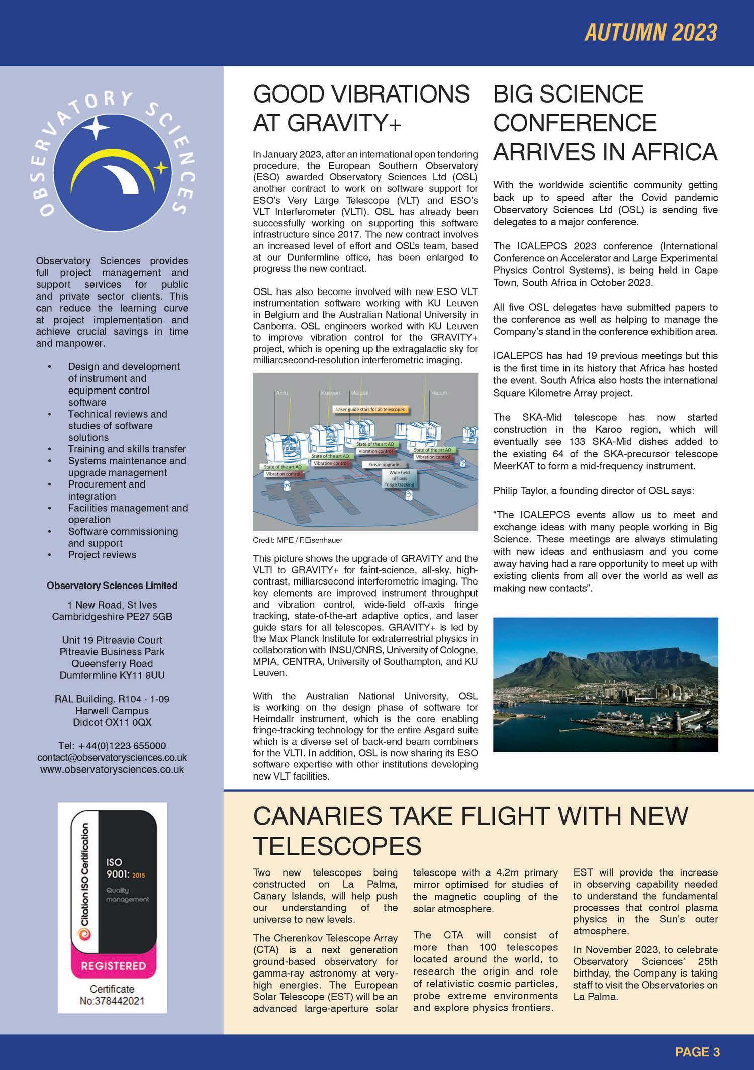 Observatory Sciences Newsletter - Autumn 2023