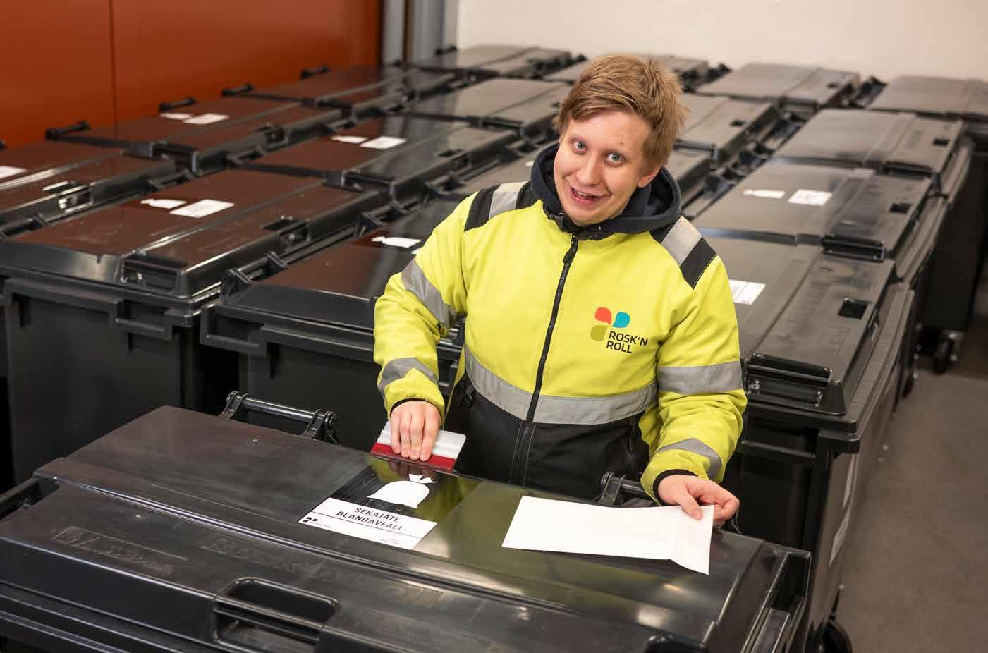 Lohjan Munkkaan jätekeskuksessa sijaitseva jäteastiavarasto palvelee koko Rosk’n Rollin toimialuetta Hangosta Loviisaan. Toni Kuosmasen ja hänen työparinsa tehtävänä on koota ja tarroittaa jätesäiliöt ja toimittaa niitä eteenpäin asiakkaille.