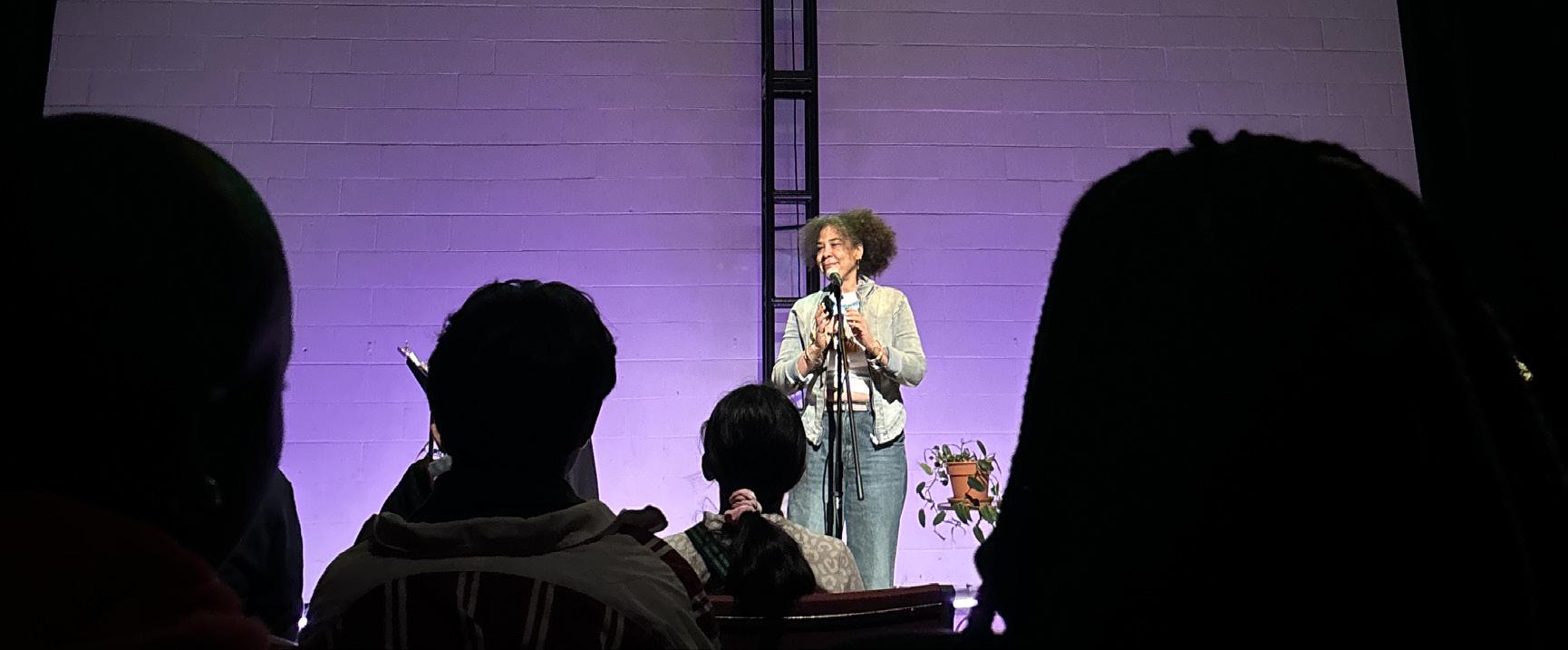 Cascading around the space with steps forward-backward and side-to-side, arms spread open then closed, her words themselves seemed to smile.