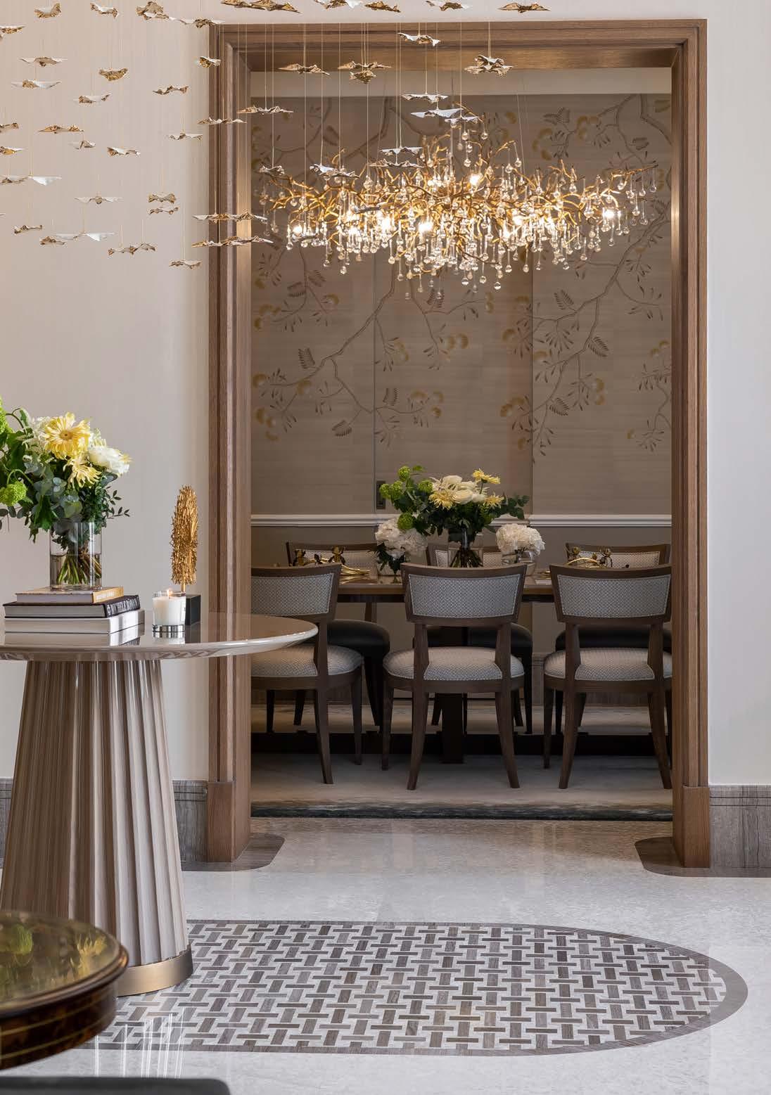 The design intent was to create a home that exuded timeless elegance through delicate details. To achieve this goal, I created a fusion of classical and contemporary design. The soft classical style of the interior architure provided a solid backdrop to incorporate modern elements to fit the clients’ tastes as well as the palettes of the multiple generations living in the home.