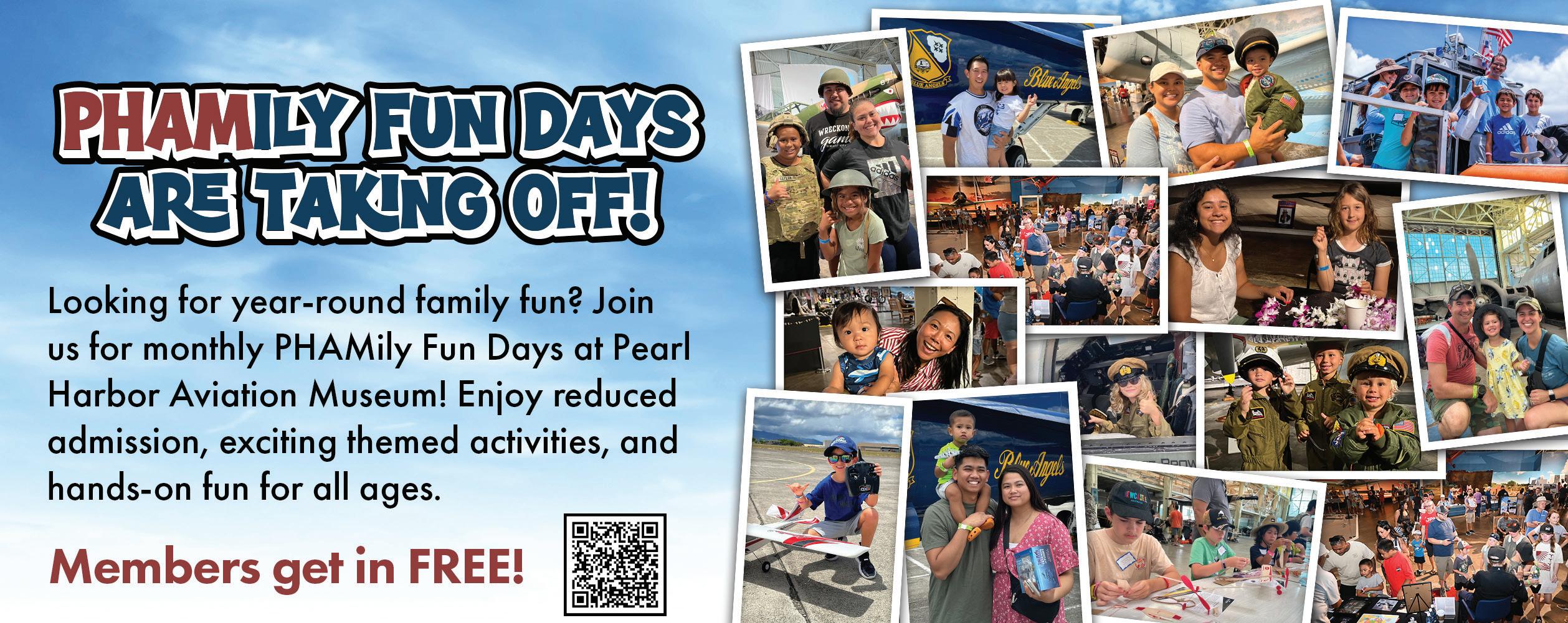 PHAMily Fun Days thrive because of the people who show up, pitch in, and spread the word. If you know an individual, group, school, or organization that would enjoy participating—whether through an activity, resource, sponsorship, or creative idea— we’d love to hear from them. Please share this information widely and help us continue growing a fun, welcoming, and community-powered experience for families at Pearl Harbor Aviation Museum.