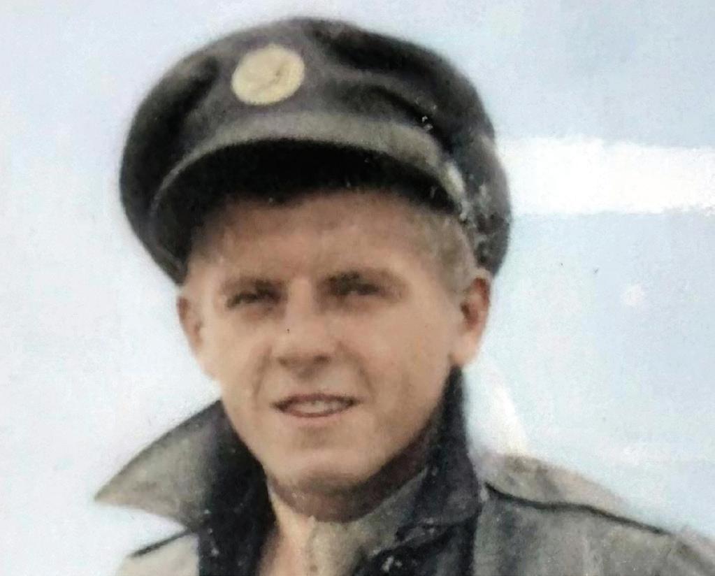 John Gleeson during WWII, when he took part in perilous missions over Europe with the Eighth Air Force aboard Consolidated B-24 Liberators.