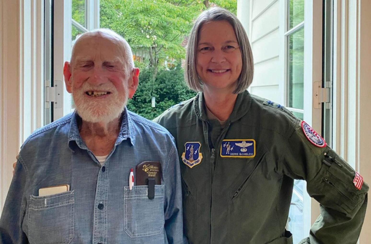 Maj. Gen. Sherrie McCandless with her grandfather, Ted Below, a Battle of Iwo Jima veteran whose service inspired her own commitment to our nation.