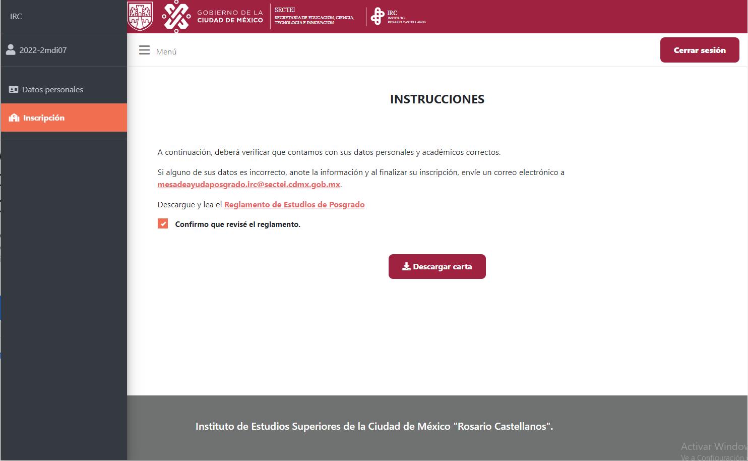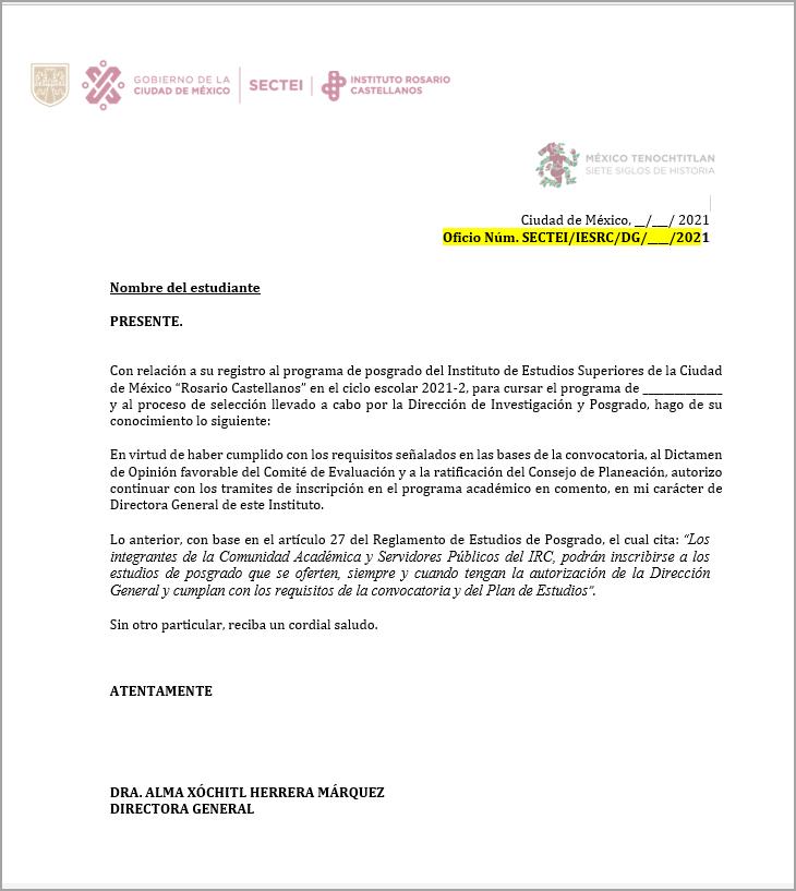 13.SiustedestrabajadordeIRC,podrádescargarlaCartadeautorización,lacualinformaa laDirecciónGeneralqueseencuentracursandounposgradodentrodelIRC.