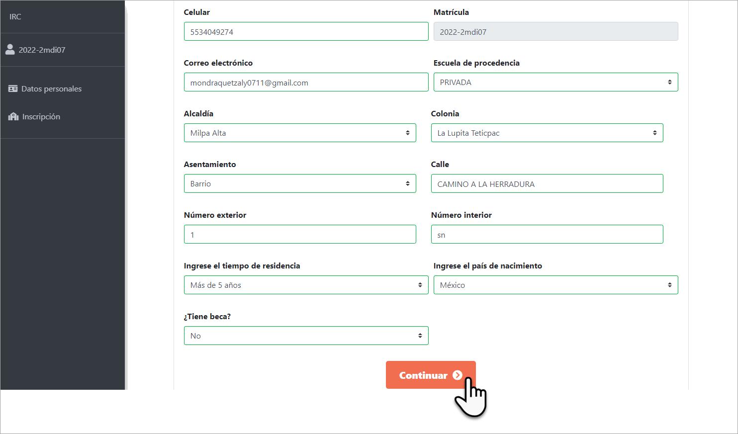 10 Después se mostrarán sus datos personales, verifique que sean correctos y capture la información que le solicitan.