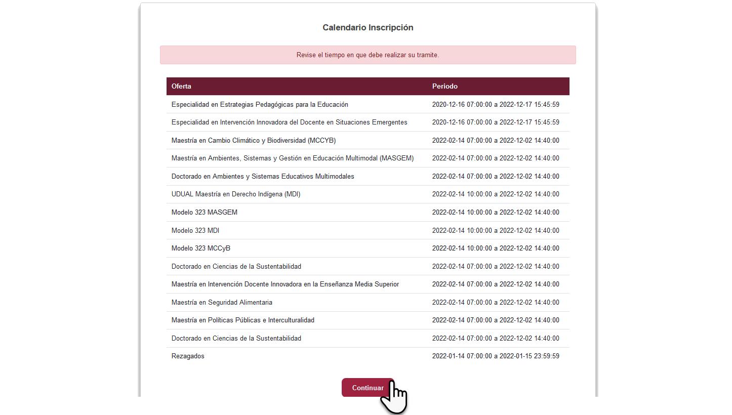 Reviseelperiodoenelquedeberárealizarsutrámite.PresioneelbotónContinuar.