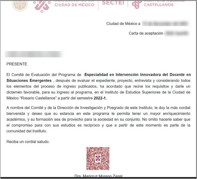 Capture su nombre y el programaenelquefueaceptado.Posteriormente,envíelaal correomesayudaposgrado@sectei.gob.mx.