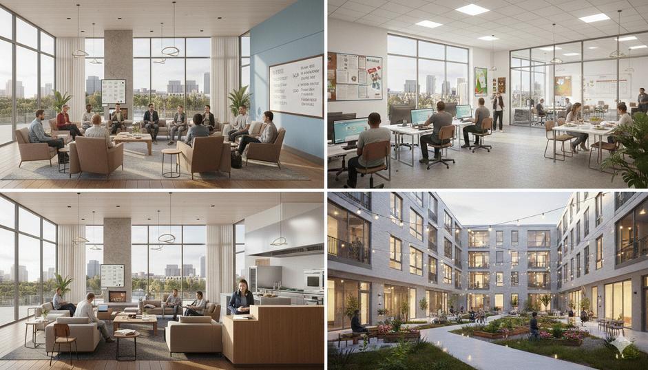The goal of The Doorway project is to provide transitional housing for young adults experiencing homelessness, specifically individuals between the ages of 18 and 29, in Denver, Colorado. The project is designed to offer a stable and supportive environment where residents can rebuild their lives and work toward long-term independence. The Doorway operates as a program-based housing model, allowing residents to stay for one to three years a timeframe intended to provide meaningful stability while they develop the skills, resources, and support systems necessary for success The building integrates a range of on-site resources and is envisioned to collaborate with volunteers and local universities to provide additional services, educational opportunities, and mentorship for residents.